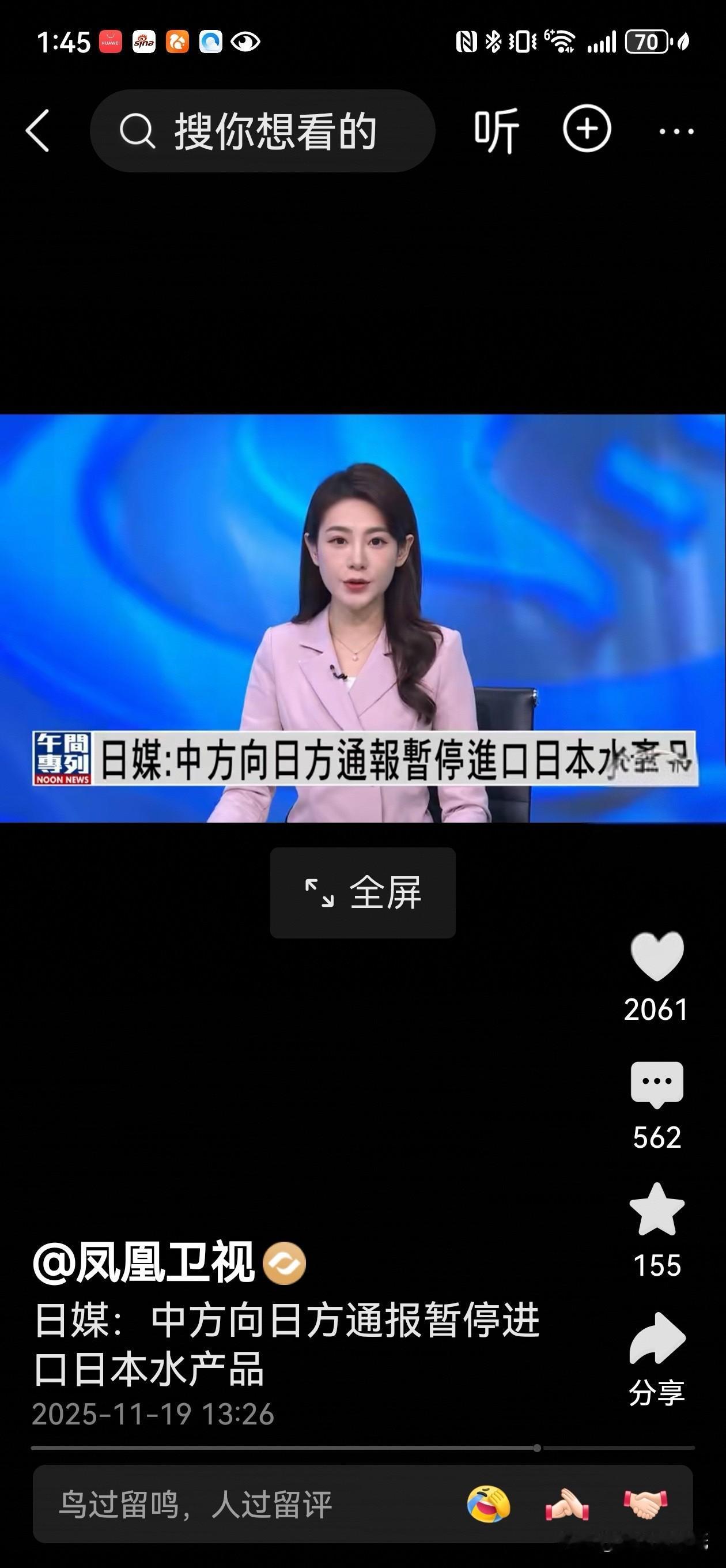 突发!中国对日水产禁令杀出回马枪,刚开的口子又封死! 就在今早,日本媒体曝出猛料:中国已通过外交渠道正式通报,全面暂停进口日本水产品!这一刀切得又快又狠,距离本月7日刚刚恢复进口北海道6吨扇贝,仅仅过去了12天。 日媒自己都承认,这次急转直下的局面,极可能是日本政客高市早苗口无遮拦的恶果。一边想赚中国的钱,一边又纵容挑衅言论,天底下哪有这么好的事? 两年前,因福岛核污水问题,中国果断暂停日本水产品进口。本月初谨慎恢复,还特别强调要“逐批检测合格才放行”,给足了日方面子。奈何有人不珍惜,非要挑战底线。 这就是中国态度:核心利益,不容试探!想合作,先学会尊重。吃饭砸锅的路,在中国这里永远走不通!