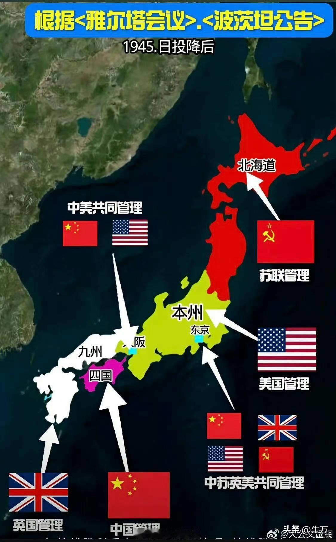 金灿荣教授直接放出图了! 就在刚才,金灿荣教授放出了一张意味深长的图片,这张图片是1945年,根据上面两个协议签订之后,具体划分的管辖范围和区域。 只是现在没有按照这个规定来,如果按照这两个协议来看的话,那就有意思了: 包括小日子的东京部分,大阪以及九州四国等部分,都得按照我们和美方一起来管[捂脸] 当然,今天的形势与以前不一样了,这些东西只不过是历史的一部分而已,可是上面那个协议,其实到现在一直在生效的,这一点是毋庸置疑的。 所以金彩荣教授才这么大大方方的,把这个图放大社交网络让我们认真的欣赏,当然更多的是给他们欣赏 ,不然小日子,有时候忘记自己从哪里来的,要到哪里去!
