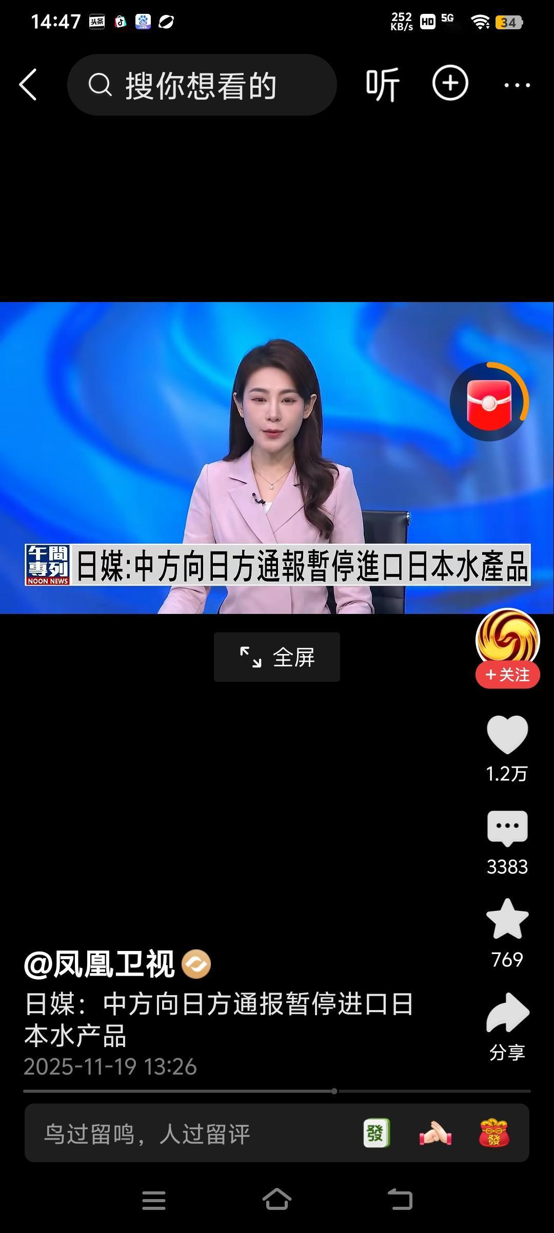 日本6吨扇贝刚到中国港口,中国又暂停进口日本水产品了。 因日本将核废水直接排到海里,为保护中国民众身体健康,中国从2023年8月24日起,直接禁止进口日本水产品。应日本的多次请求,中国今年前后四次到福岛独立取样检测,在每次水样检测合格后,才对日本水产品进入中国开了一个小口子,进口6吨扇贝。 不料就在这6吨扇贝到达中国港口之际,日本首相高市早苗又公然碰触中国的底线,发表涉台的错误言论且拒不收回,遭到了中国外交、军事和经济多方面的猛烈反击。 在中国提醒中国公民赴日旅游的风险后,现在又暂停进口日本水产品是必然的结果。就让日本渔民把这些水产品,都喂给他们的好首相高市早苗一个人去吃吧!