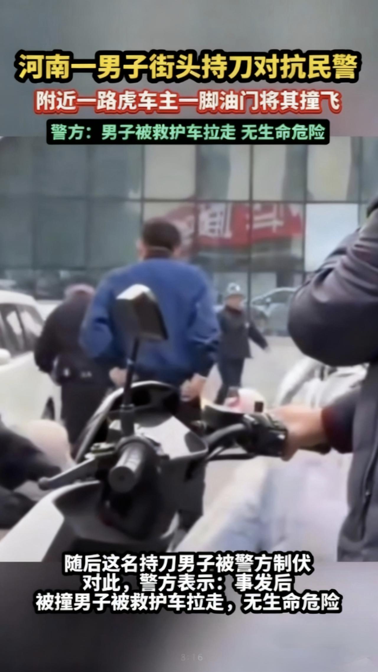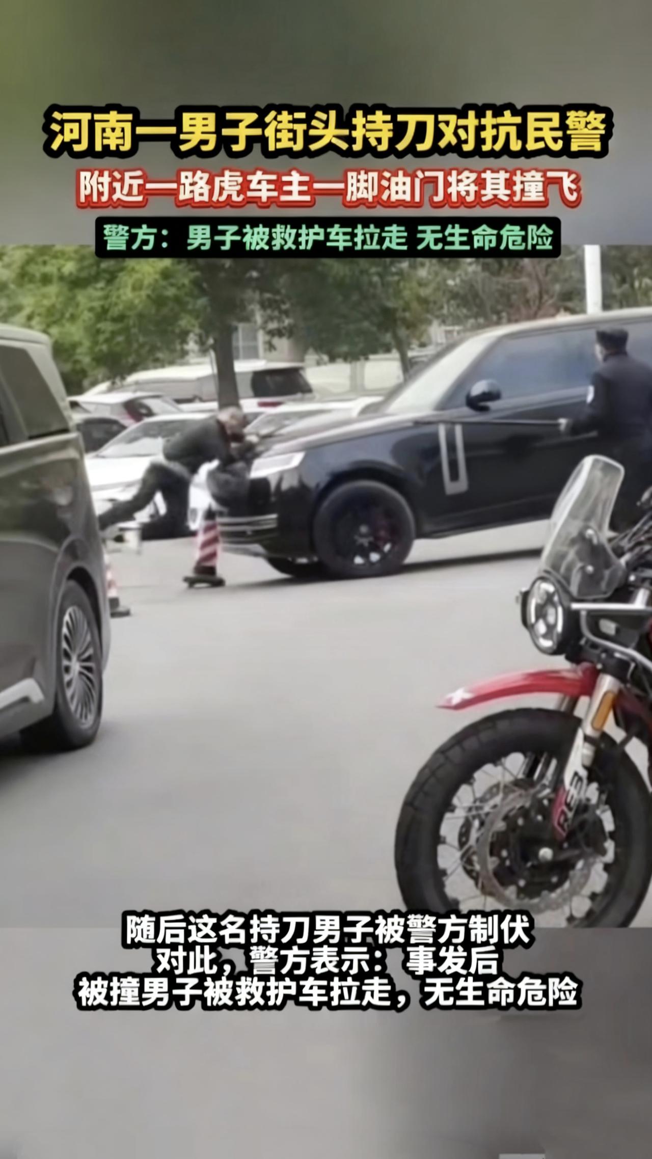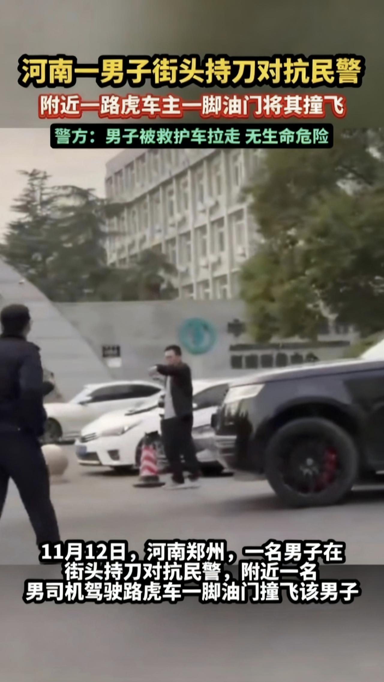 郑州街头"硬核救援":路虎司机一脚油门,撞出最帅正义模样。 11月12日下午,河南郑州农业银行研修中心门前的街头,一场惊心动魄的对峙打破了城市的平静。一名黑衣男子手持长刀,情绪激动地与多名民警持续对峙,数次挥刀直指执法人员,锋利的刀刃在阳光下闪着寒光,过往行人和车辆纷纷避让,家长们下意识将孩子护在身后,现场气氛紧张到窒息。 就在这千钧一发之际,一辆黑色路虎车的举动让所有人屏住呼吸。视频画面中,驾车男子没有慌乱逃窜,反而缓缓倒车调整角度,目光紧紧锁定持刀男子。当对方转身暴露侧面的瞬间,路虎车突然加速,精准地将持刀男子撞翻在地,长刀脱手飞出数米远,既没有过度撞击,也没有给对方反抗的机会。民警见状立即一拥而上,迅速将倒地男子制服,整个过程不过十几秒,却足以让人热血沸腾。 下车后,路虎司机身着蓝色上衣,双手随意插在裤兜中,神情从容淡定地查看现场情况。这个洒脱的背影被网友抓拍下来,迅速刷屏社交平台,大家纷纷调侃"那年我双手插兜,不知何为对手",直言"车技和胆识都太帅气"。目击者李先生回忆,当时男子情绪过激,刀具看着足有50公分左右长,幸好路虎司机力度拿捏得当,才没造成更大危险,围观群众无一人受伤。 事件发酵后,郑州市公安局金水分局北林路派出所很快回应:被撞持刀男子送医后无生命危险,路虎车主的行为属于公民自发制止不法侵害。法律界人士也明确表态,根据《刑法》第二十条规定,持刀男子暴力袭警的行为已构成正在进行的严重暴力犯罪,路虎司机的行为完全契合正当防卫的全部要件,既无需承担刑事责任,也不用负民事赔偿责任。网友们更是一片叫好:"这才是真正的路见不平,既勇敢又机智""控制力度太关键,既制服了坏人又没闯祸"。 有人问,有民警在场,普通市民何必冒险?但在危险面前,犹豫一秒就可能多一分伤害。路虎司机的可贵之处,在于他的冷静与果敢——没有盲目冲上去搏斗,而是用最安全、最高效的方式协助执法,既保护了现场群众,也为民警处置创造了关键时机。这不是鲁莽,而是深思熟虑后的"见义智为",是刻在普通人骨子里的正义担当。 从古代"路见不平拔刀相助"的侠义精神,到如今"法不能向不法让步"的法治理念,正义的内核从未改变 。郑州这位路虎司机用一脚油门告诉我们,英雄从不是遥不可及的符号,可能就是街头偶遇的普通人。当危险降临,有人选择退缩,有人选择挺身而出,正是这一个个勇敢的瞬间,汇聚成守护城市安宁的力量。 目前,持刀男子的具体涉案原因仍在调查中,等待他的必将是法律的严惩。而那位匿名的路虎司机,用一次果断的出手,撞出了最帅的正义模样,也让我们看到:社会的安宁,既需要执法者的坚守,也需要每个普通人的正义微光。这样的"平民英雄",值得我们所有人点赞,更该被铭记。 你是否也为路虎司机的勇敢点赞?来评论区聊聊你的看法。路虎冲撞 路虎见义勇为
