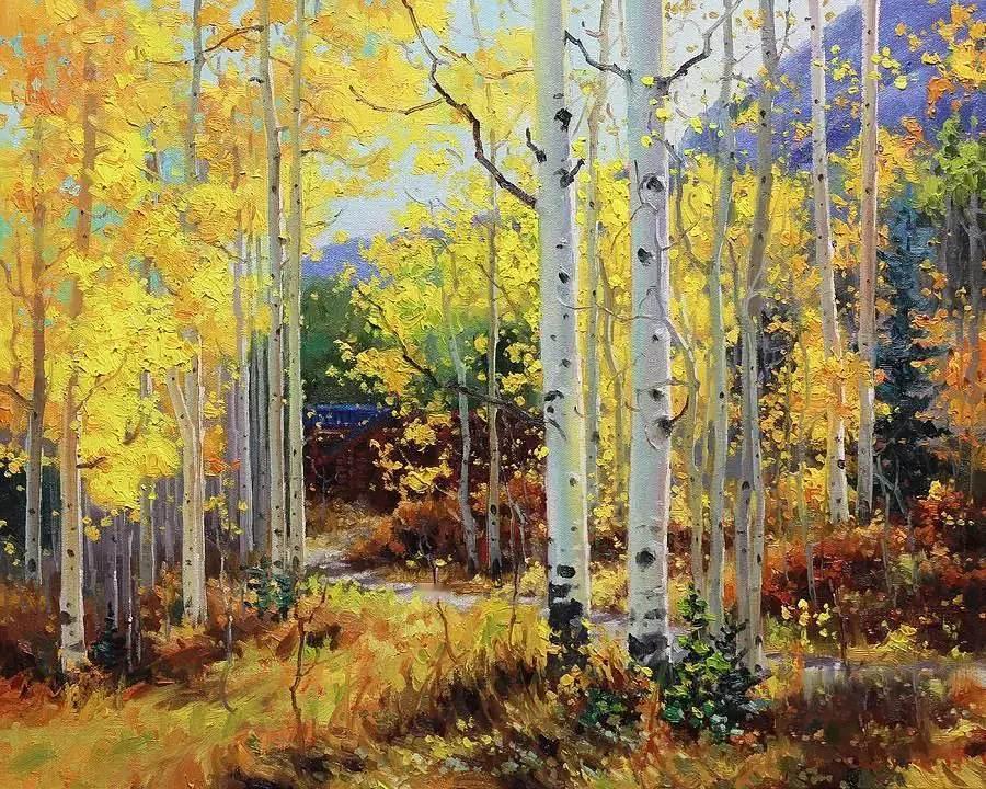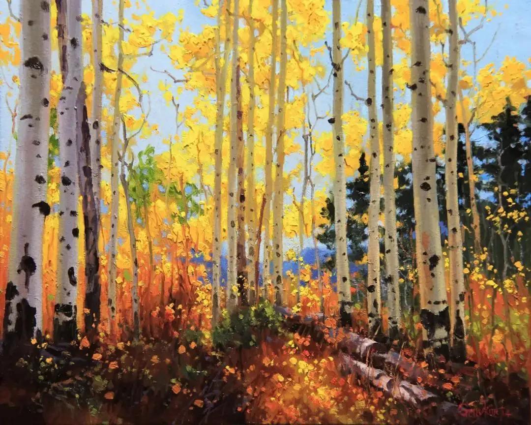 充满激情,明亮欢乐的油画,就是美!加里·金的风景画明亮欢乐,充满激情,美!如诗如画的风景 带你走进画里 最美银杏树