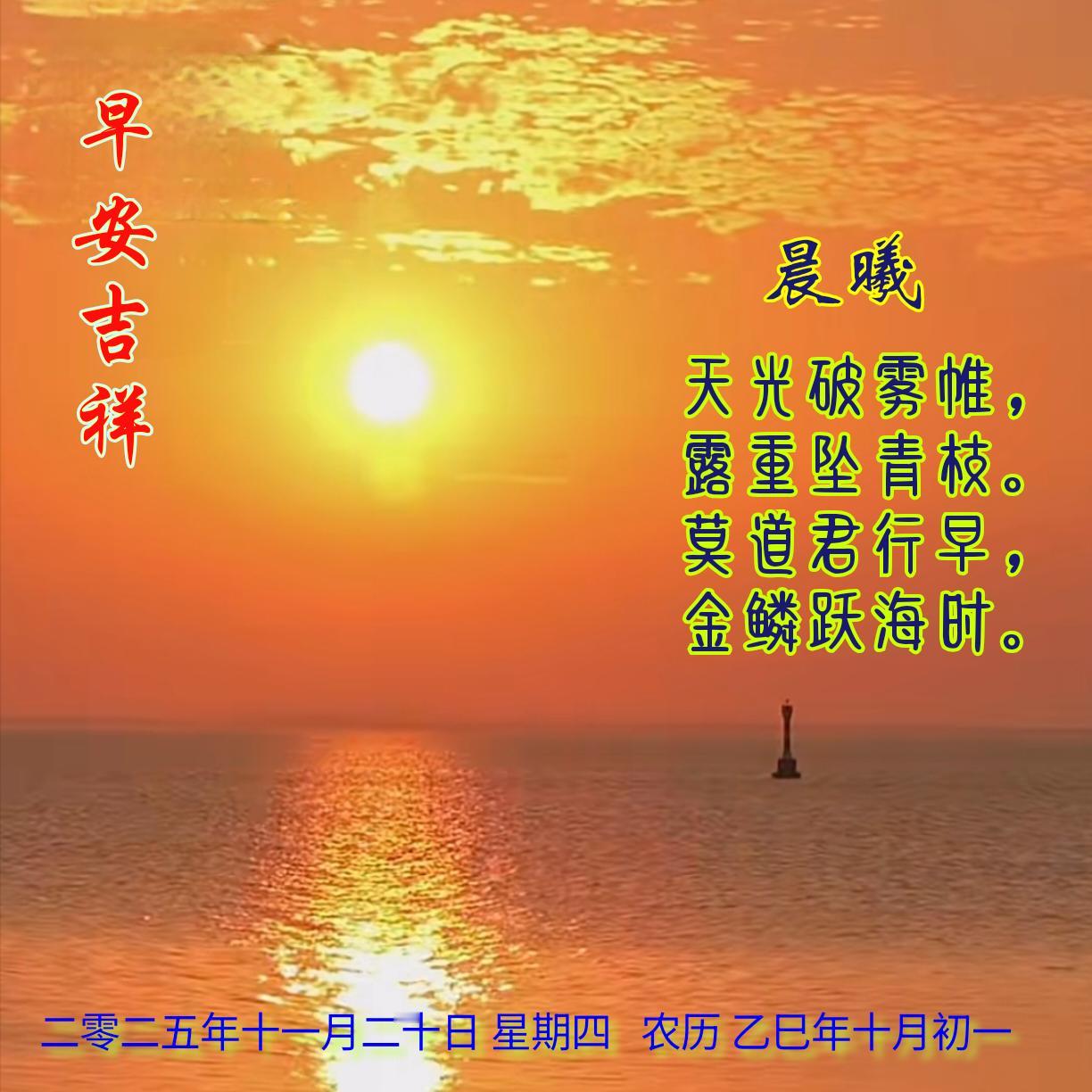 《晨曦》 天光破雾帷, 露重坠青枝。 莫道君行早, 金鳞跃海时。