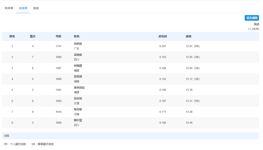 全运会女子100米栏决赛,广东队的刘景扬获得金牌!获得亚军!
