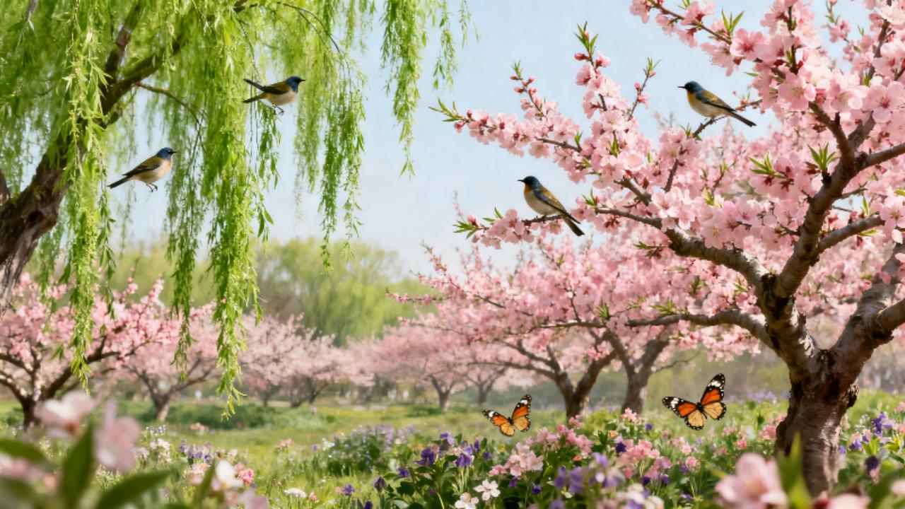 上联:东去山明水秀, 下联:春来柳绿桃红。