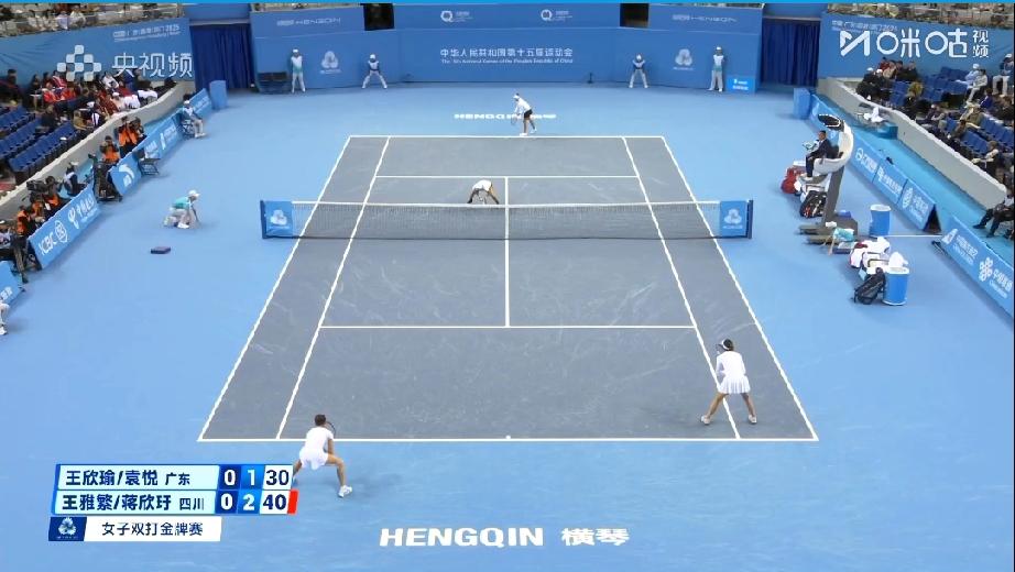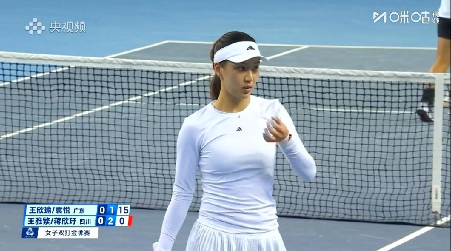 王欣瑜今天不会连丢两块全运会金牌吧? 全运会女子网球双打的决赛刚刚开打,广东组合王欣瑜、袁悦开局不利,上来就被对手破发了一局,现在首盘1:3暂时落后。 今天白天,王欣瑜在和朱琳的女单半决赛中落败,丧失了争夺女单金牌的资格,如果晚上再输掉这场女双决赛,那今天对于王欣瑜来说,真的是失落至极! 但愿王欣瑜最终能“失之东隅收之桑榆”,输了单打金牌,拿到双打金牌。