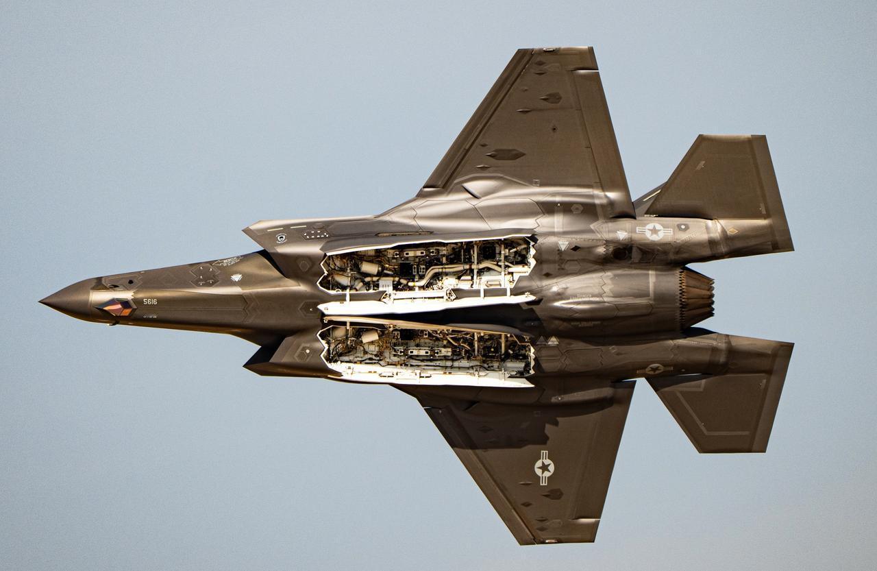 阿联酋迪拜马克图姆国际机场上空 · 隶属于犹他州希尔空军基地第388战斗机联队的一架F-35A闪电II在迪拜航展现场进行飞行表演