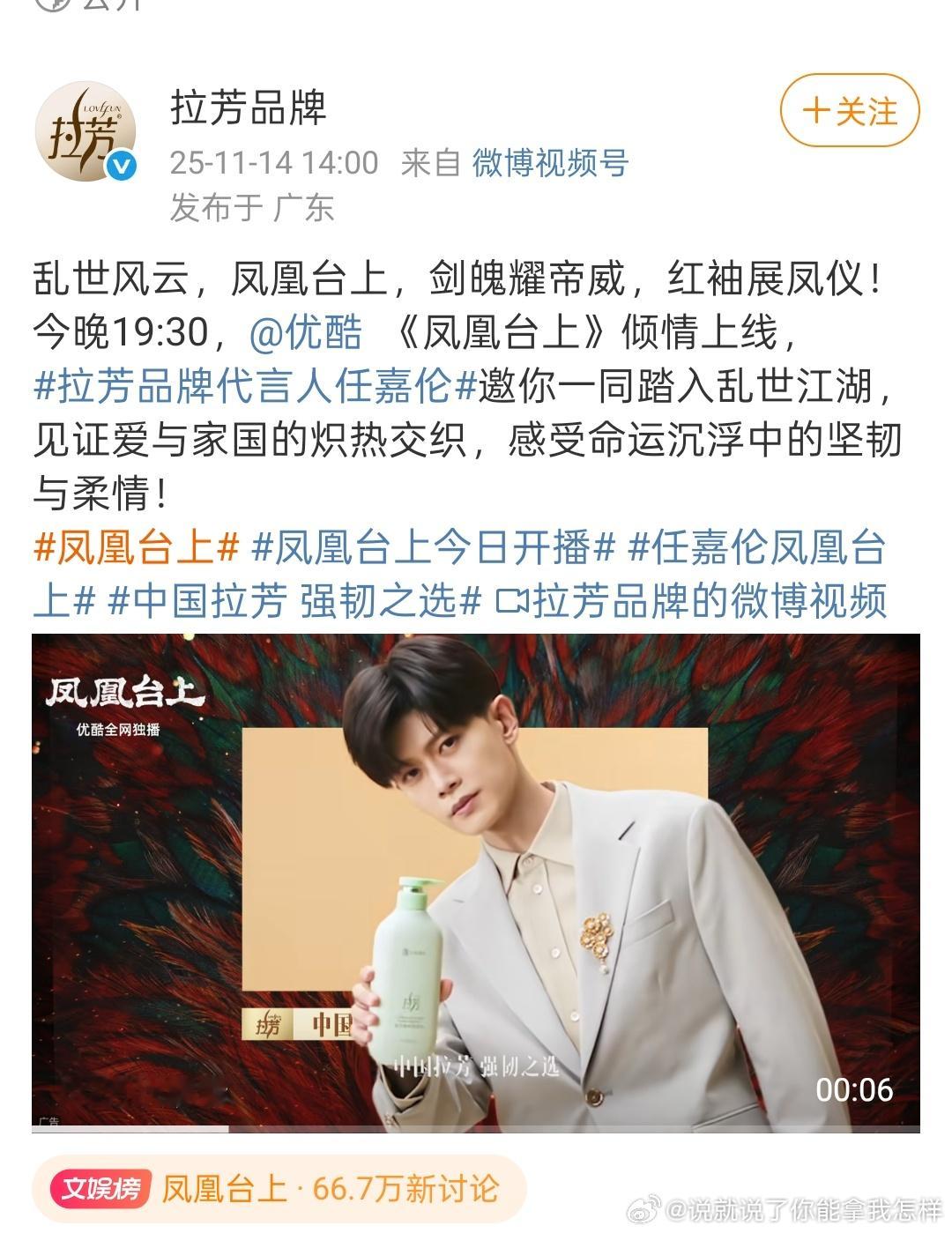一部剧的广告多少受很多因素影响:剧集质量、剧方资源、IP热度、档期节点(比如双11、暑期档)、以及演员本身的号召力……所以“广告多”并不能简单复制到每一部剧上。但有一点很明确——如果品牌是冲着某位演员才选择投放,那就是对这位演员商业价值最直接、最硬核的认可。《凤凰台上》这次的招商,要么是任嘉伦代言,要么就是冲着任嘉伦来的,这份信任就是最好的证明。