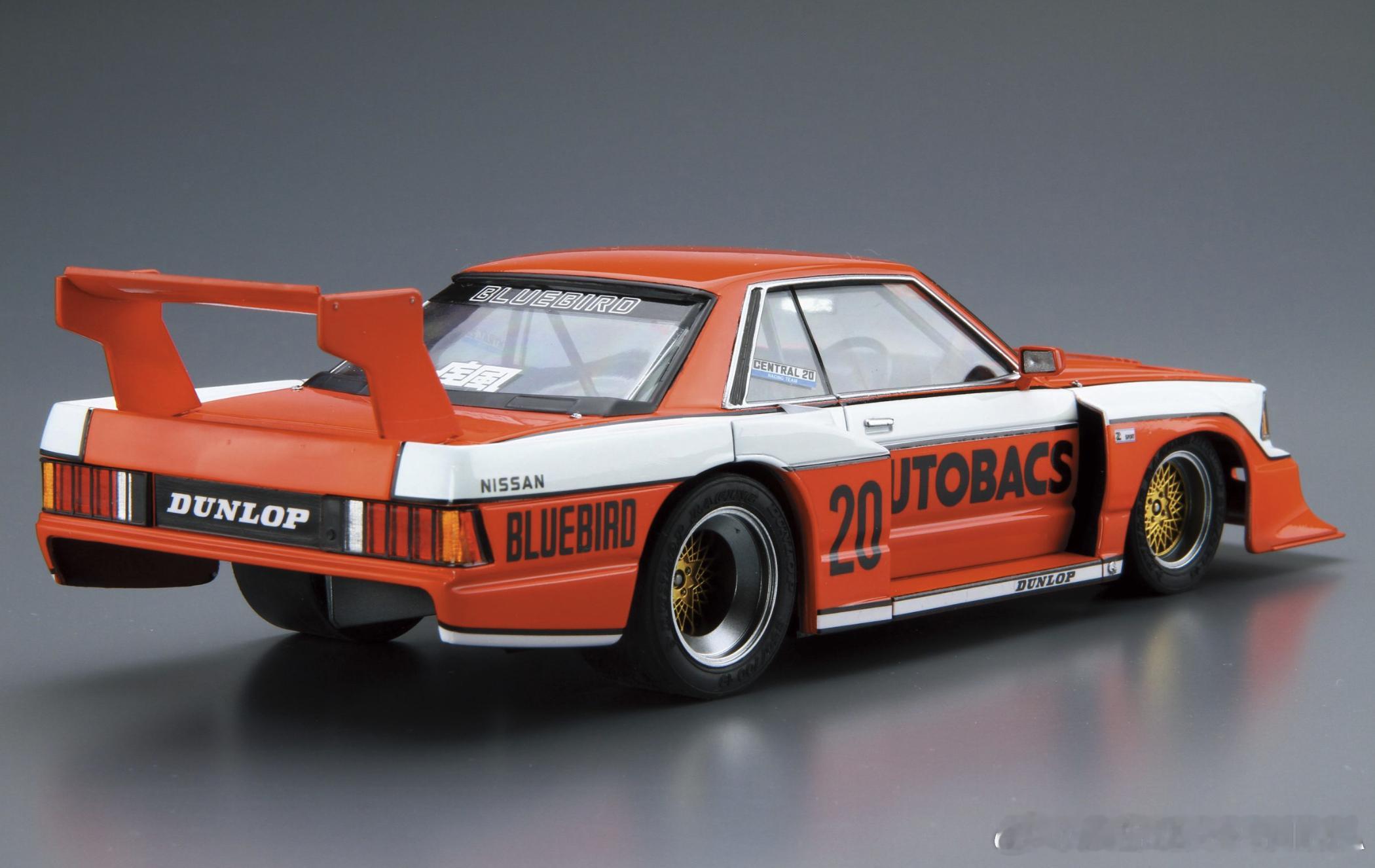 11月新品1/24 经典赛车系列推出——NISSAN KY910 Bluebird Super Silhouette ’8320 世纪 80 年代初,“Super Silhouette Series” 以夸张空气动力套件与暴力涡轮引擎为特点,以接近量产车外形、却拥有近 570 马力的怪物赛车席卷车迷。轻量化车身、巨大的尾翼、炽烈的回火声,让当时无数车迷为之着迷。本款模型忠实再现了被称为“日产涡轮剪影军团橙色战车”的 Bluebird Super Silhouette:• 精密再现 1983 年的赛车造型• 采用高品质丝网印刷贴纸(silk-screen decals),色彩鲜明• 细节锐利,具备强烈的时代赛车风格※图片为试作品,与实际产品可能有所不同