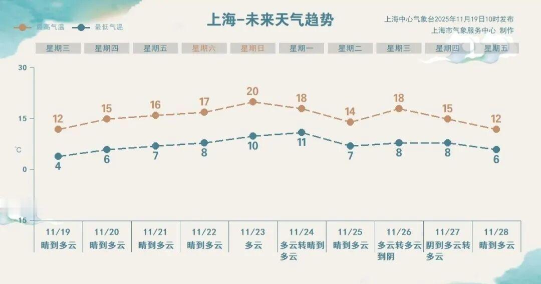 【晨温-1°C要入冬?再等等……20°C又要回来了】申城今天(11月19日)受晴