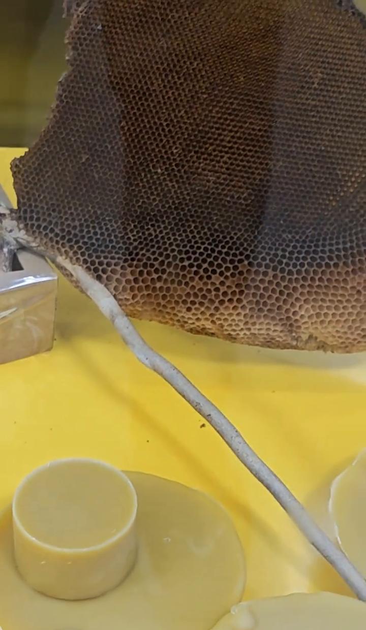 这蜂窝咋就长成这样? 顶上是底,底上是顶,跟倒着长似的。 野生小牌蜂真不简单,一年就能造出个大房子。 别看它小,这可是天然建材天花板。 工蜂靠肚子造蜡,自己盖房子,比咱还勤劳。 蜂群大了要分家,老王带着一帮兄弟走人。 新王一出生,老王就得滚蛋,这事儿比职场还卷。 蜂蜡还能做口红、药片、糖果,真·全能选手。 大自然的设计师,造出来的玩意儿,连塑料都比不了。 你要是碰上这种蜂窝,千万别瞎动。 保护野生蜂,等于保护咱们的生态未来。