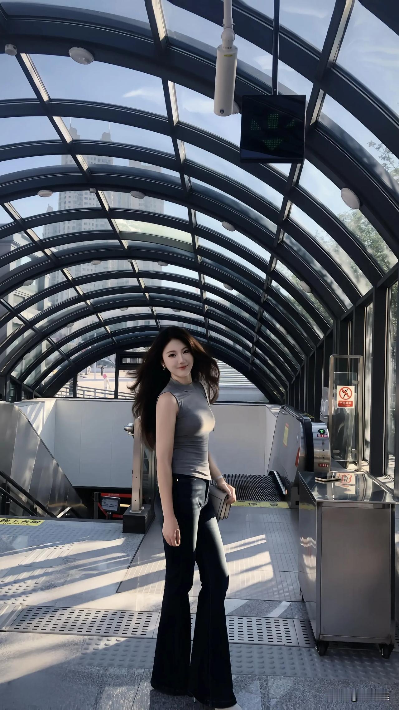 海天一色,少女漫步在海边,美不胜收!🌊👗💃