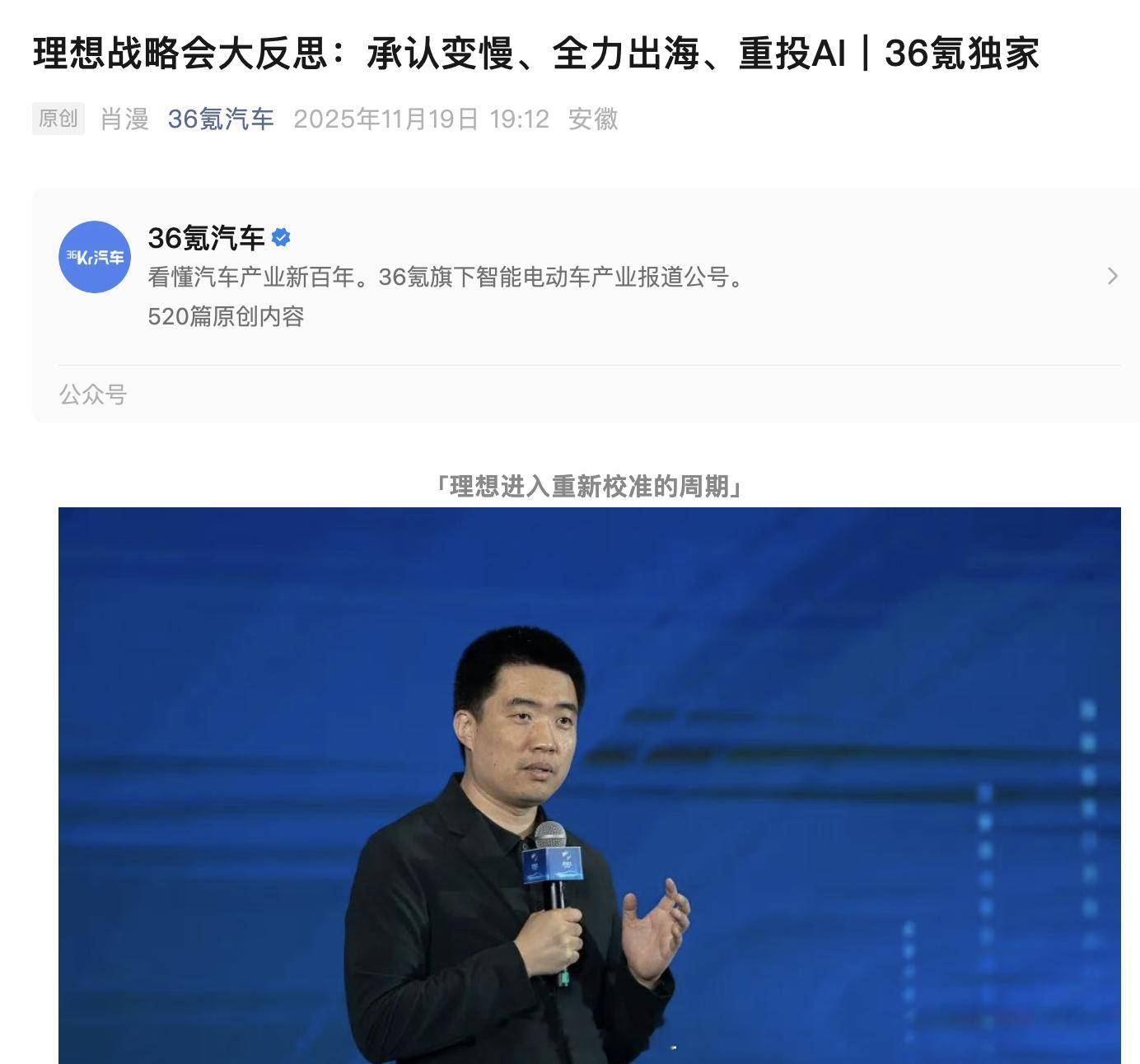 36氪的爆料北京雁栖湖闭门三天,理想把研发、产品、组织、出海全面复盘。总结下来:1)车型迭代要卷:过去四年一代的平台节奏,放到今天已经完全不够,确定要把“4年一迭代”压缩到“两年一平台”,该卷配置卷配置,该做爆款做爆款,回到自己最擅长的单品逻辑。2)出海,也被认为是过去最大的失误——起步太晚。平行出口被政策彻底卡住后,理想才开始加速布局中东、中亚和欧洲,并同步按照海外法规开发新车。3)战略的核心关键词,是AI。理想将继续扩大算力投入,每月算力投入已超过1亿,自研第二代车规芯片将在两年后量产,重点强化推理能力。同时布局机器人、AI终端设备,试图在AGI时代找到新的增长点这三点下来,你觉得会有哪些改善?
