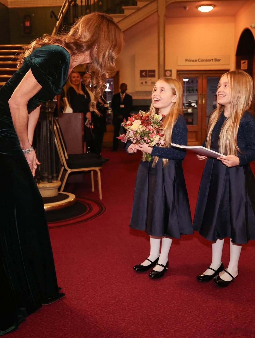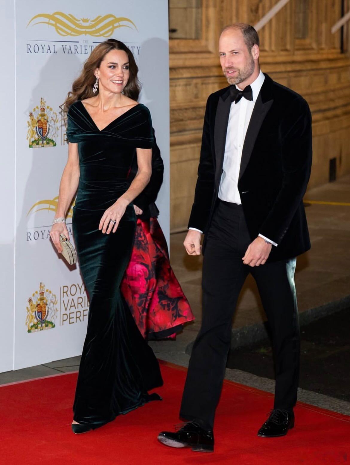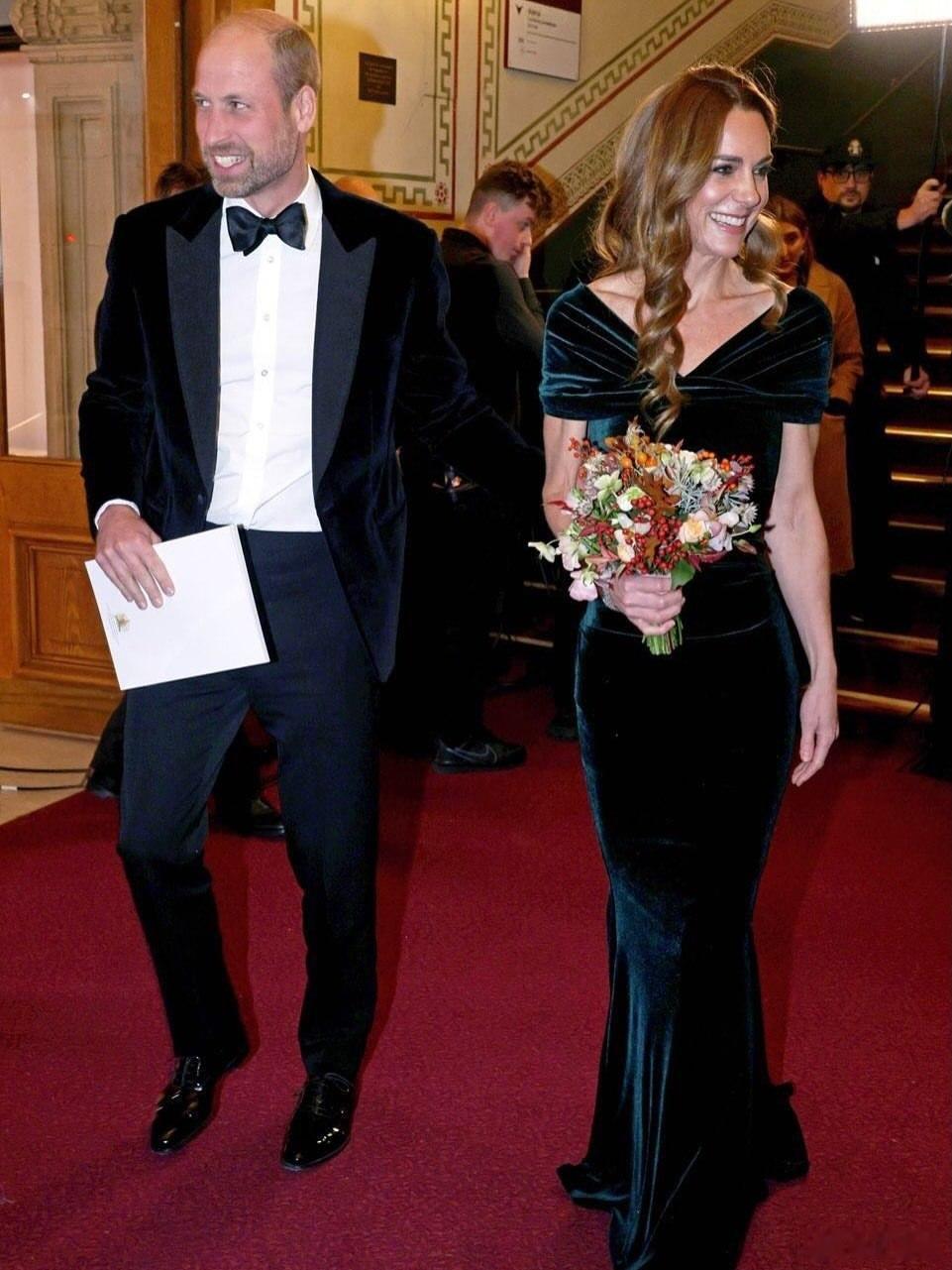 🇬🇧11月19日,威尔士亲王威廉和王妃凯瑟琳出席皇家阿尔伯特大厅举行的年度皇家文艺汇演。 礼服来自Talbot Runhof。