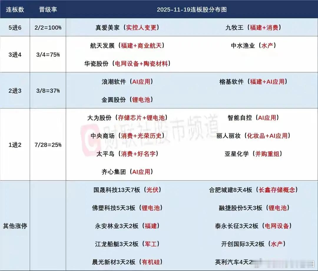 11月20日盘前预案:反制题材全面走强或将接力,合富出关能否扭转海峡颓势?1、昨天的市场走势是非常难看的,指数红盘的状态下,全市场下跌个股超4千家,更让人难受的是市场整体缩量2千亿,这样的表现说明短期内市场是很难有大起色的,但是这样的行情下还能红盘,说明是有资金不想指数持续下跌的,所以今天市场可能会有整体止跌现象,但是想要走出持续上涨可能会有难度,那么接下来指数更多的会以筑底为主!美股止跌,但是中概股却是集体下跌,A50也冲高回落翻绿,外围情绪并不好,那么早盘对于A股的助力就有限,市场早盘或许会有进一步下探的走势,但是连续多日的情绪低迷,再加上昨天指数出现了明显的止跌信号,那么今天或许会有个触底反弹普涨的走势,毕竟从情绪上来看,也确实到了该反弹的时候!2、毫无疑问昨日市场最强方向再次切换到了对日反制题材,有意思的是这次的炒作不再是向玄学靠拢,而是真正意义上的题材推进,毕竟昨天是有暂停进口日本水产品的消息面,这也使得水产养殖方向迎来了久违的高潮表现,而昨天的全面爆发跟周一的冲高回落形成鲜明对比,毕竟前面是耍嘴皮子,这次是动真格,市场接受到这一信号,开始持续炒作不要意外!中水是这个方向的绝对核心,昨天的一字板必然是因为消息面被很多聪明资金提前预判到,而早盘水产的异动也说明了这一点,但是多只个股是冲高回落的,午后消息面传来时,多只前排个股都是直线拉升涨停,这样的高潮表现,中水今天那就是绝对的超大单一字板,这几乎是没有悬念的,而对于整个水产方向,首板肯定会有多只晋级,但是如何选择做套利就需要很好的思考了!从情绪上看,国联的性价比还是非常高的,毕竟20cm的赚钱效应摆在那里,而且如果中水持续强势,出现20cm个股共振上涨是大概率事件,从近期的平潭和海峡的关系看,行情就是如此,所以中水竞价超强的情况下,国联会是多数资金承接进攻的方向,从情绪上看,只要中水足够强,国联就算冲高回落也是比较值得去抄底套利的,更不用说它今天甚至会直接开出一字板,毕竟昨天整体的洗盘已经非常漂亮,如果它开出一字板,对于整个水产方向的高潮会有更大的促进!首板方向最强的是海洋,它大概率也是一字板给不到买点,而午后最早上板的好当家、大湖和獐子岛或许会成为资金无奈的选择,所以对于水产这个方向,今日走出多数一字板的概率非常大,很多个股很难有参与机会的情况下真的不如博弈下国联的20cm,只要板块整体情绪在,国联参与的价值就非常高!3、另外一个反制题材发酵方向就是军工了,早盘航天的超强表现晋级确实比较意外,但是它却并没有带动高一个身位的龙洲,这虽然有隐忧,但是航天整体情绪还是比较好的,毕竟昨天军工后排是出现不少的,虽然大部分是海工装备方向,但是这也实实在在的是反制题材,只要蹭到了概念,不排除航天能够继续走出来,所以它竞价的强度就比较值得期待了,毕竟昨天是缩量晋级,那么它竞价的预期就会很高,如果它不能出现大幅高开就是弱势的表现,反而很容易被兑现,反之,一旦竞价超强,它或许会再次出现资金去承接继续顶出一个涨停板,毕竟从最近小群做多的个股看,只要早盘情绪到位,晋级是大概率的,就算竞价稍差,也是会有触板,但是隔日就不一定好过,所以航天的接力只能是在竞价符合预期的情况下去!海工装备方向最具辨识度的是锚链了,它是一个回调到底部的倍量涨停,如果军工方向有持续性,它是最可能走出来的连板个股,毕竟军工从航天方向转移到海工方向,或许是因为日本临海的原因所在,所以锚链一旦竞价有明显的抢筹,它走出连板晋级的概率还是非常大的!4、合富今日复牌,但是海峡方向在平潭停牌后已经连续大分歧两天了,三木昨天甚至按死一字跌停,这样的表现是非常恶劣的,那么合富复牌的预期就并不高,出现恐慌性抛盘的概率非常大,毕竟昨天海峡方向依然是大面积的负反馈,合富开盘出现情绪补跌再正常不过了,但是它能不能稳住不直接下杀跌停会是短线的一大看点,如果它能给到正反馈,对于整个海峡的短线情绪是可能会起到促进作用的,反之,一旦它开盘就奔跌停去,对于海峡方向可能会雪上加霜!市场最高标是6板的九牧王和真爱美家,从涨停形态上看,两只个股的预期都不高,特别是九牧王还是福建股,隔日如果合富负反馈肯定会产生影响,所以九牧王的竞价表现就非常值得关注了,一旦出现大幅低开的负反馈,那么整个短线情绪就会非常差,海峡方向继续走弱的概率极大,反之,一旦九牧王能够红盘开,那么短线海峡方向或许会有复苏,毕竟这个方向已经连续大调整了两天,从情绪上来看,是有反弹的需求!5、篇幅有限,AI方向浪潮作为核心风向标,今天会不会走出类似摩恩4板的放量形态是一大看点,锂矿和芯片双重属性的大为或许会有弱转强表现,毕竟多氟多盘后密集的利好会对这个方向起到带动作用!文中的内容仅为分享和交流,不作为实际操作建议!
