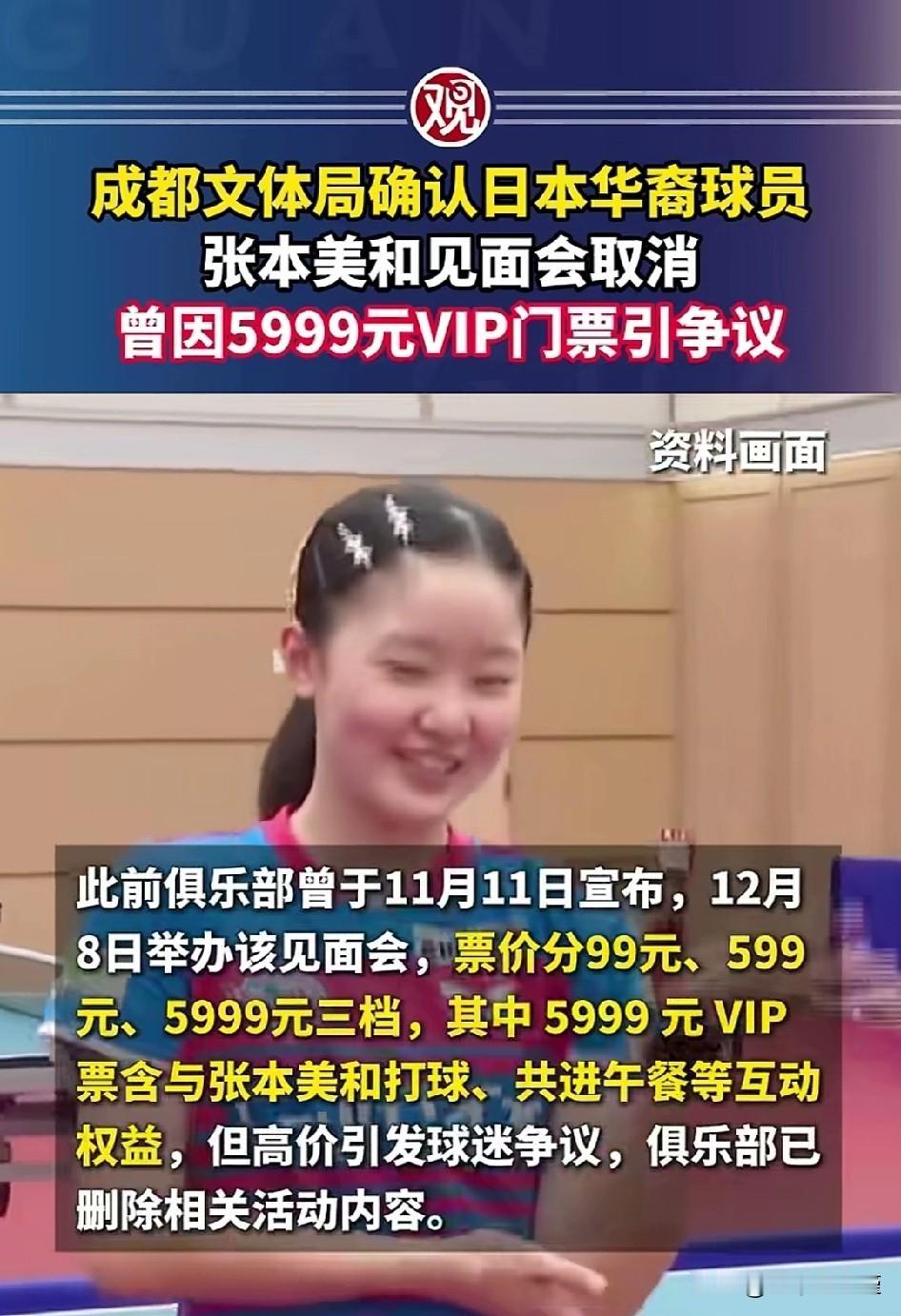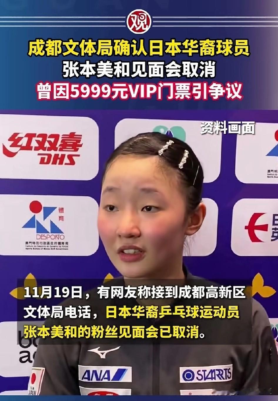 成都高新区文体局因为日本球员张本美和着实火了一把。 原定于12月8日举办见面会,出价最高者为5999套餐的vip,不仅可以和日本球员张本美和打球,还可以共进午餐等权益。这钱挣得是真6。国内的顶尖运动员估计都没这么天价的待遇吧。如此看来还是外国的比较“香”。 不知道是不是因为这一家子以前是中国人,后来组团成为日本人后,这种新鲜感让成都看到了商机,赶紧大操大办。 但有网友说了,成都属于四川,四川有一个响亮的名片——川军。川军这个名片就不用多说了吧,大家都晓得! 但商业这东西已经跨越了某些不该跨越的东西。所以才招致网友们的反感。 随后,19日,文体局告知媒体,这活动咱不办了,取消了!这肯定是意识到什么了,才取消的,或者可以理解为在这个敏感时刻不适合办这个;亦或是在不敏感的时候再搞起来!谁知道呢! 也不知道这个5999vip套餐之前卖出去多少,都是谁这么积极的赞助的!无从得知! 乒乓球 日本乒乓球 张本智张本美和 张本美和 张本美和表情包 张本乒乓球 中国乒乓球队