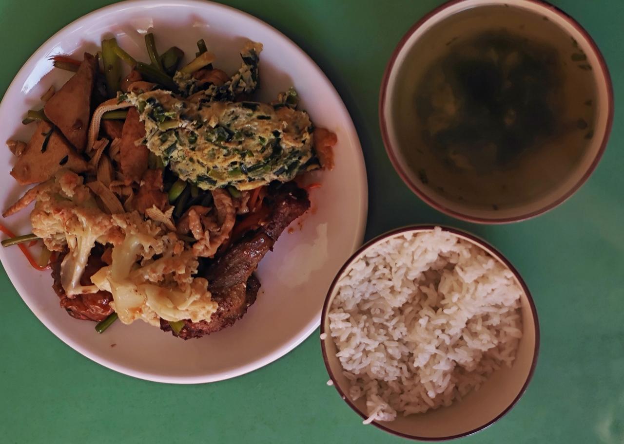 白米一碗承清味,小菜盈盘佐饭香。 蛋汤温润驱寒馁,粗茶淡饭亦安康。 无需珍馐添雅兴,简单日子自含芳。 心随烟火添欢悦,平淡之中乐未央。