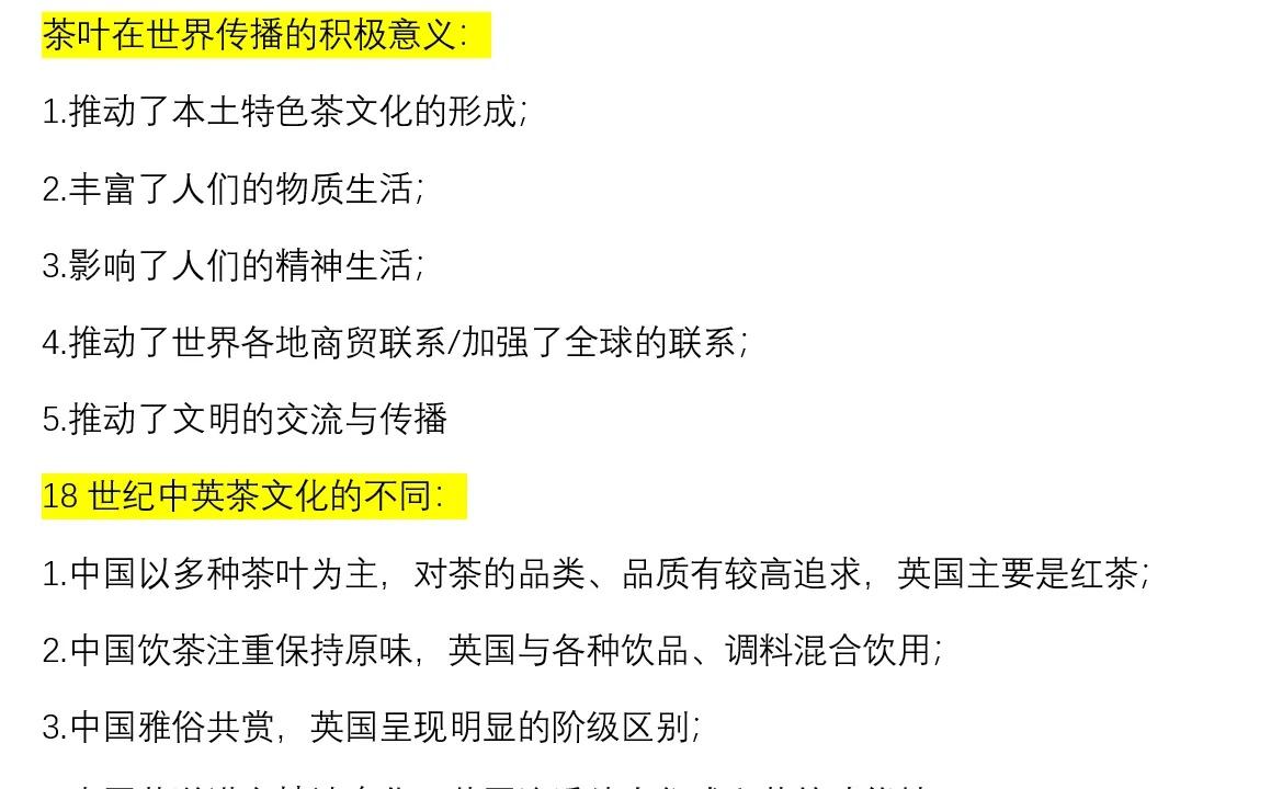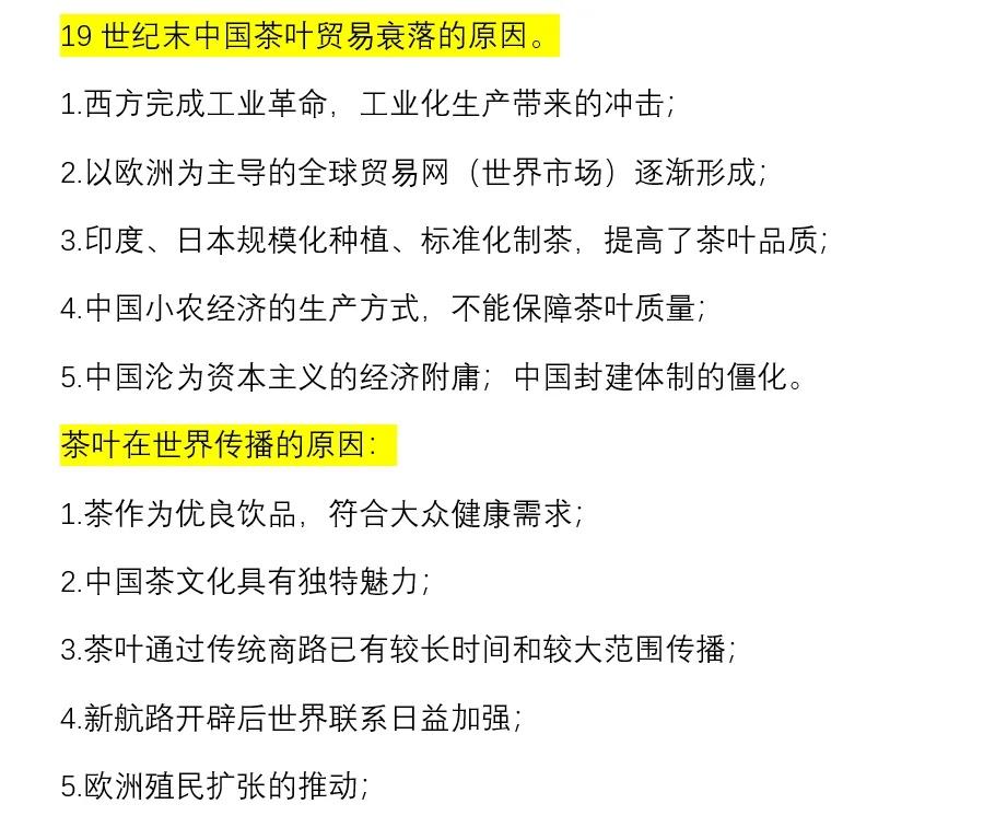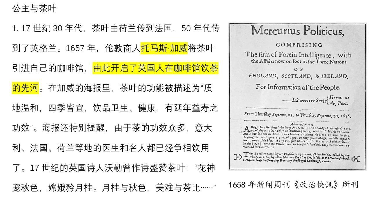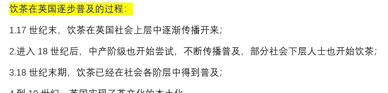 凯瑟琳公主与英国茶叶发展史 关于茶叶,高考和模拟考出现频率非常高,我把大题里经常出现的问题也总结在后面,需要做笔记的同学注意一下[机智][机智][机智] 这里简单聊聊凯瑟琳公主(又译为卡塔里娜)这个人。凯瑟琳当时的嫁妆除了茶叶和精美的茶具以外,还为英国带来了丹吉尔和孟买,这份嫁妆算得上相当丰厚了。 可是她和查理二世的婚姻难称得上幸福,查理二世一生情人众多,私生子也不少,可是她缺未能生下孩子,虽三次怀孕,但也三次lc。 凯瑟琳还曾被指控谋害查理二世。可以说在当时凯瑟琳并不是特别受到欢迎。 直到光荣革命后,凯瑟琳回到了葡萄牙,享年67岁。 致高考