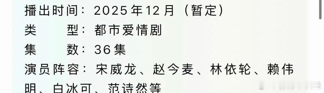 宋威龙、赵今麦《骄阳似我》开始播前招商,预计12月中旬腾讯视频播出。