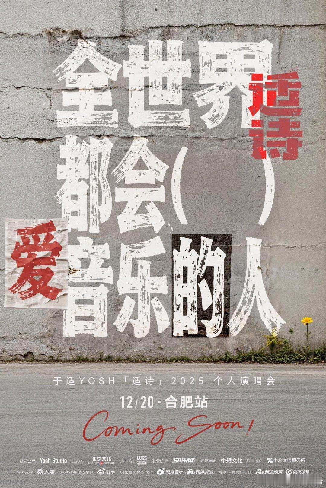 官宣!于适的首次个人演唱会「适诗」12/20合肥站即将来袭,是歌手是诗人,是演员是骑手,于适的每一面真的都非常精彩了,可以想象他抱着吉他在歌唱舞台上唱歌的样子,想立刻穿越到12.20演出当天了,正好是生日前,大家提前练好手速准备抢票吧!