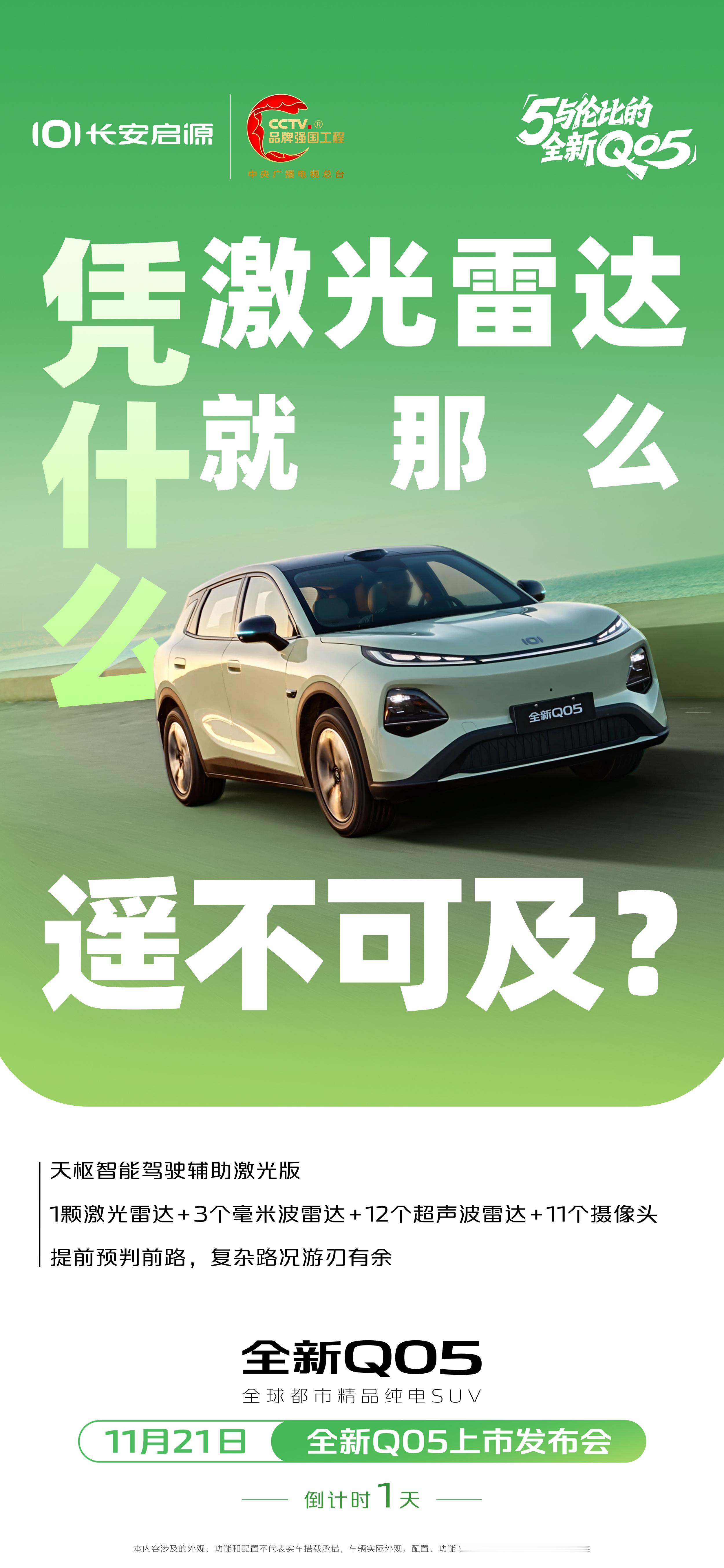 天枢智能驾驶辅助,从从容容激光雷达精准预判,游刃有余智慧随行,懂你所需!11月21日,全新Q05上市发布会广州车展不见不散!全球都市精品纯电SUV智能移动生活家新长安新安全天枢智能 2025广州车展