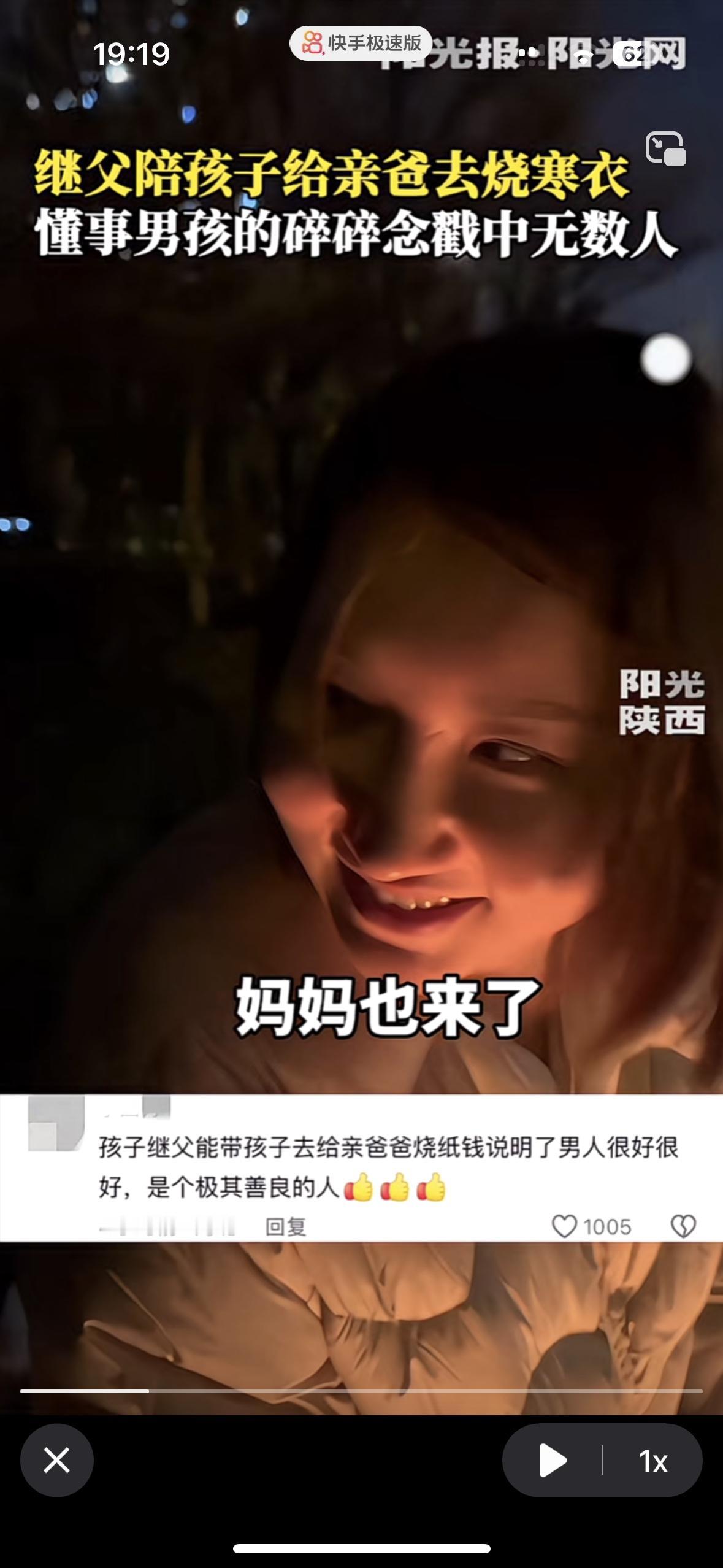 我建议所有的继父都向他学习 男孩带着继父和妈妈去给自己的亲生父亲烧纸 不仅如此,继父还大方的带上了妻子。男孩说我和我爸又来了,说明已经不是第一次继父和他一起给去世的父亲烧纸了 多么暖心的继父,不计较孩子的亲生父亲,心胸开阔还来给妻子的前夫烧纸,难怪男孩能管他叫爸爸! 现在妈妈又生了个妹妹,一家四口人幸福的生活在一起!这样的继父才是真正的好继父!