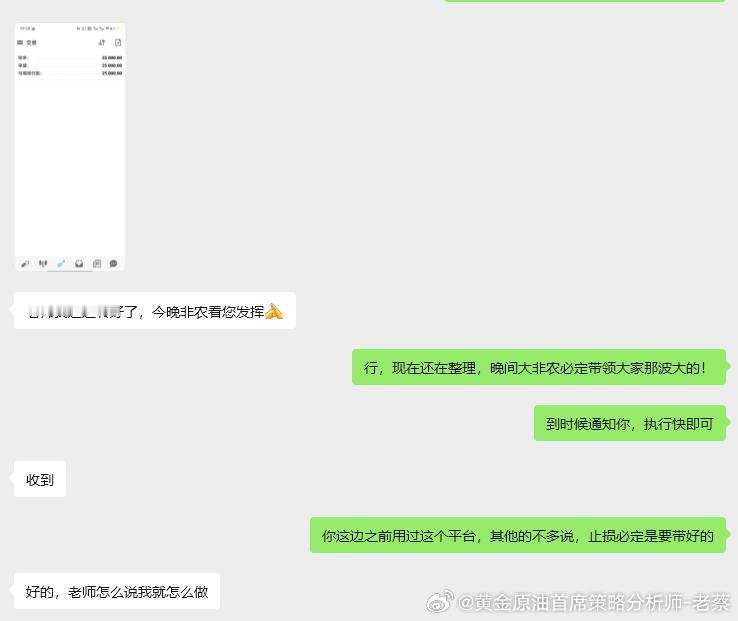 欢迎陆先生入金2.5W美刀加入老蔡陆先生是最后一位赶上非农末班车的乘客,今晚即将迎来让人激情澎湃的超级数据大非农,相信好多朋友摩拳擦掌等着分一杯羹,现在行情维持在一个区间震荡局面,像是暴风雨来临前的宁静,至于到底是个什么行情肯定是猜不透的,咱们只要做好所有准备迎战大非农行情就行,不打无准备之仗,稳健才是我们的风格!