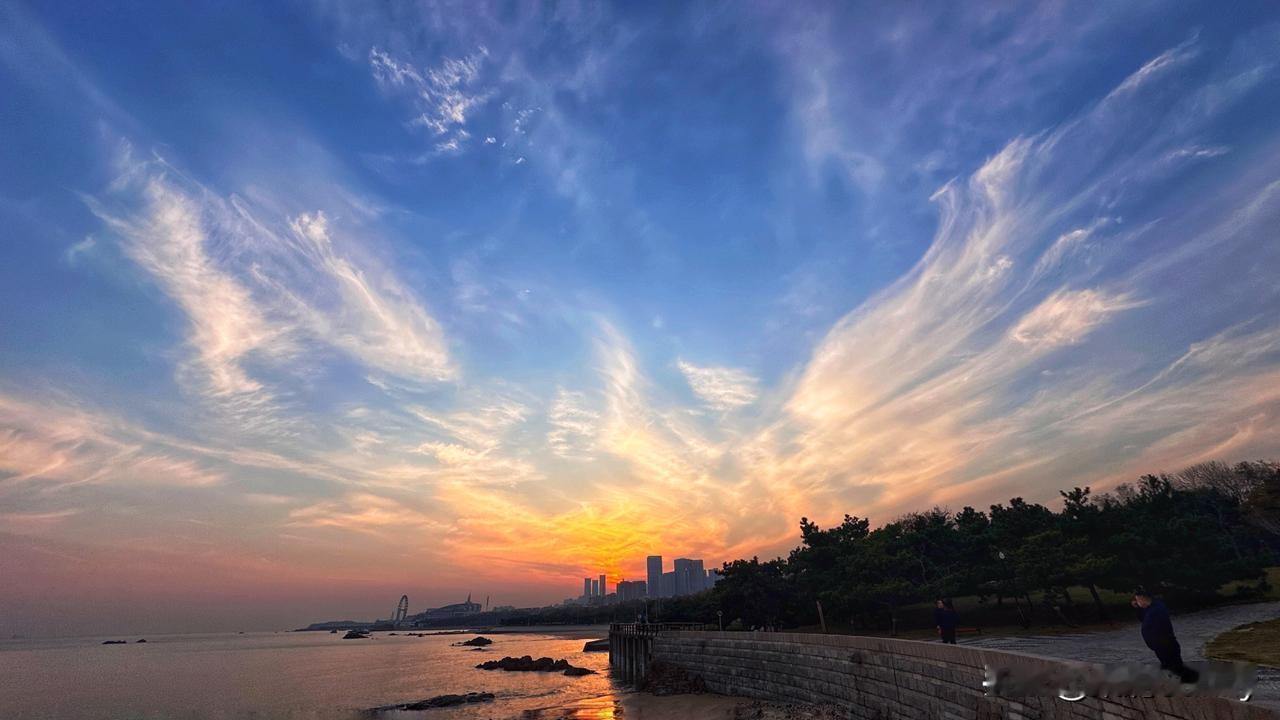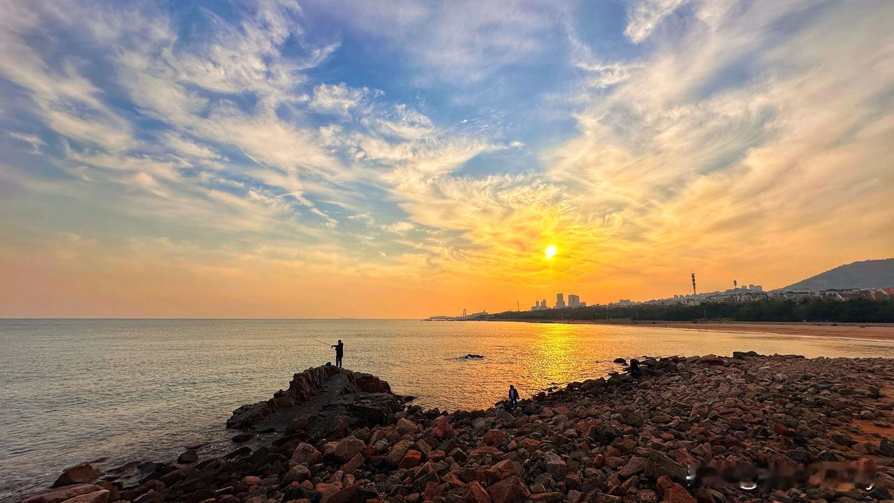 《海畔向晚》 云被烧作橘色的浪 浸软半片粼光 楼群矮进暮色里 落日正吻过窗 礁石擎着钓竿的影 线缠进风的悠长 蒲苇站成沉默的岗 听潮声轻拍沙壤