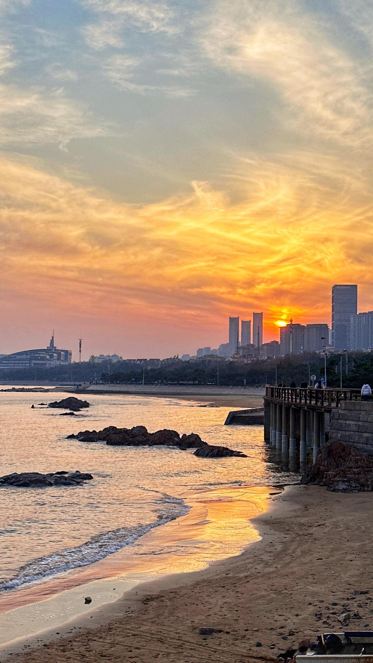 《海畔向晚》 云被烧作橘色的浪 浸软半片粼光 楼群矮进暮色里 落日正吻过窗 礁