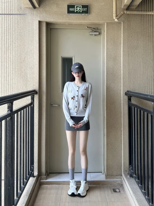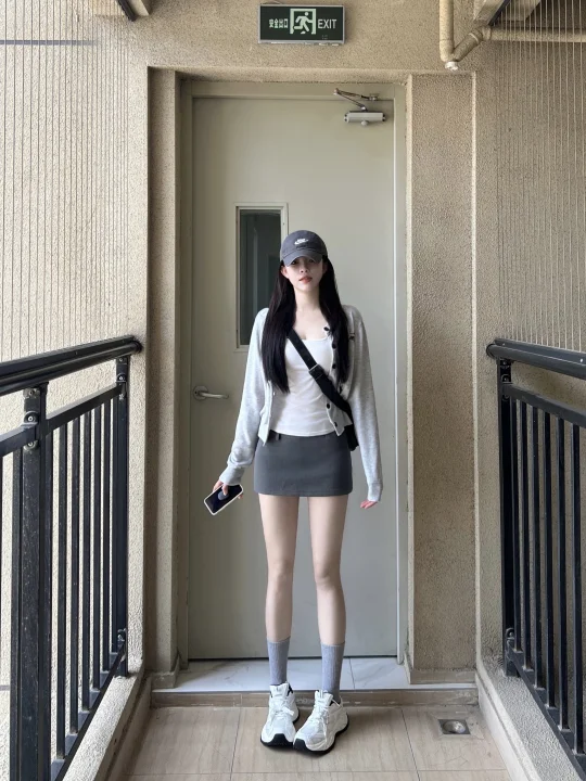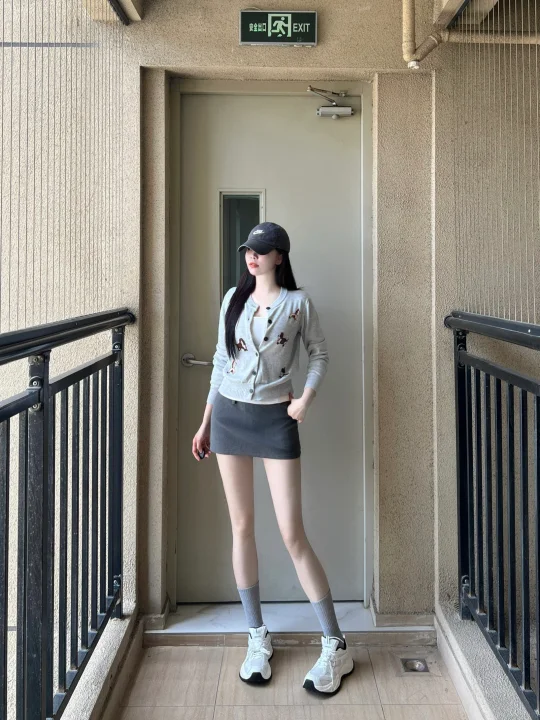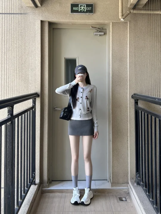 初秋搭配 开衫穿搭 短裙运动鞋 袜子 休闲穿搭 减龄穿搭