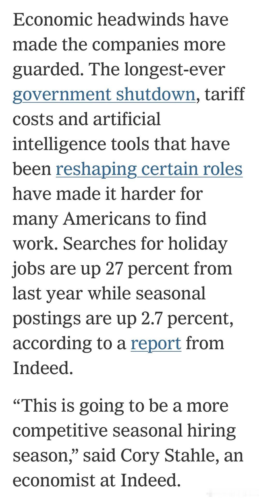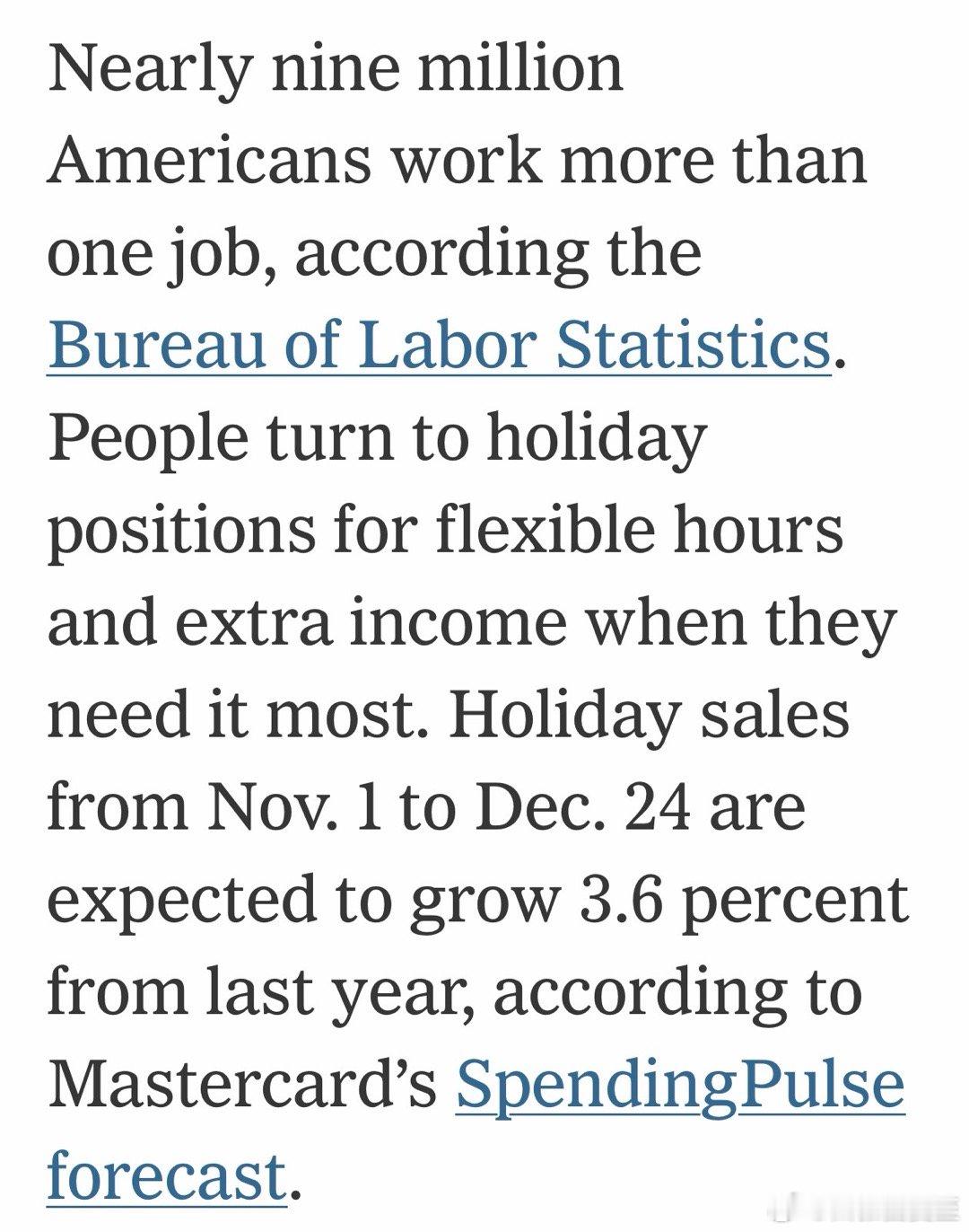 九百万美国人,打第二份工大多在年底,节日购物季,打零工补贴家用今年零售业季节性雇人,有可能少十多万,是十几年来最低水平关税成本、人工智能、政府关门…各种因素而生活成本增加,需要这份收入的大涨,招聘网站上,找节日临时工的,多了27%,竞争会非常激烈