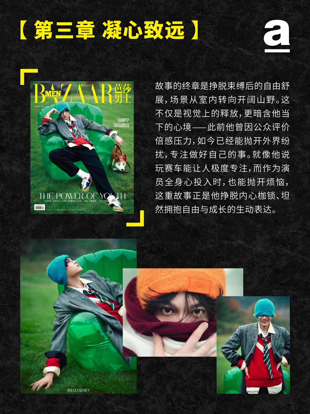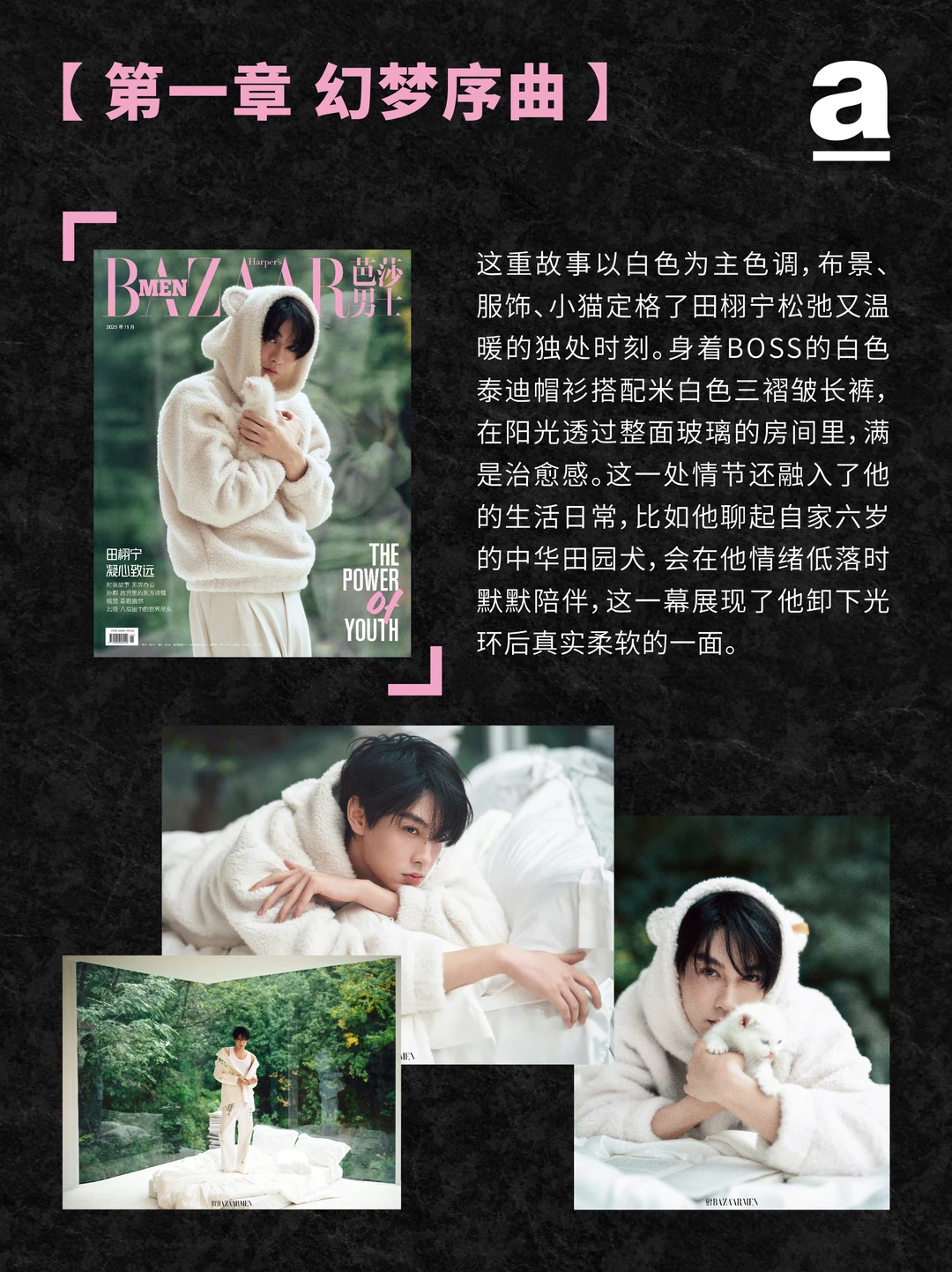 田栩宁这组《芭莎男士》11月刊封面,不仅仅是时尚大片,更是把“少年成长史”拍活了啊!三套造型三种心境,从柔软到蛰伏再到绽放,每一件衣服都在述说故事! 作为首位拿下《芭莎男士》三封面的新生代,他真的把“演员的共情力”揉进了时尚表达里,看完满脑子都是“这才是有灵魂的造型啊”!