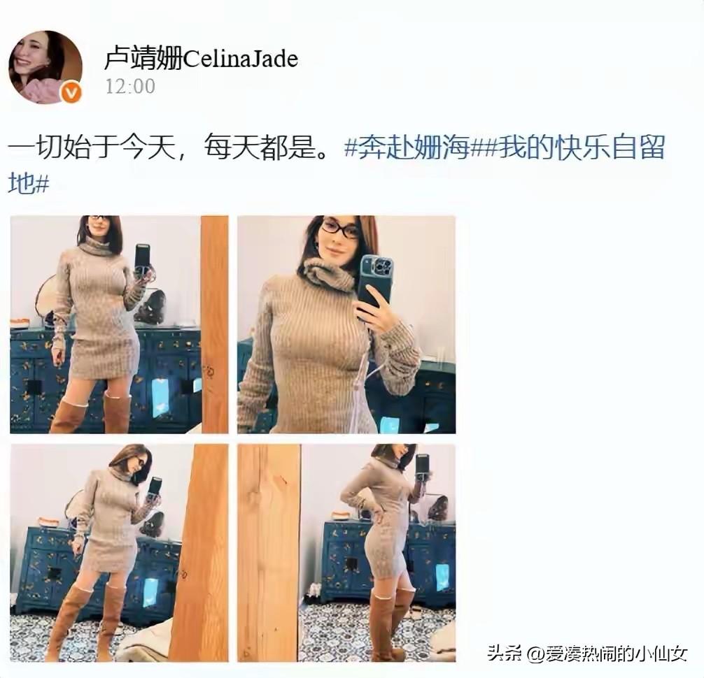 卢靖姗产后素颜晒照,身材丰满凹凸有致,未出月子也不惧露腿,气色红润有活力! 11月21日,上个月刚官宣生二胎的卢靖姗在自己的社交平台上,首次晒出了产后照片。 照片中的她身穿棕色高领毛衣裙,搭配过膝靴,对着镜子摆出各种造型自信自拍。 她和韩庚是在10月24日官宣生二胎的,这么算一下的话,到今天应该还没满一个月。 今年刚好40岁的她,也算是高龄产妇了,能在不到一个月的时间,身材恢复得那么好,应该是跟她常年坚持健身锻炼的关系。 照片中的她,比生孩子前丰满了些,但是小腹平坦,即便穿着厚毛衣,也能很明显地看出她身材的凹凸有致。 从她头发明显的黑色发根来看,她应该有阵子没有染发了,应该也是考虑到母乳喂养的关系,她也没有化妆没有美甲,素面朝天,指甲修剪得很干净。 尽管如此,她整个人看上去气色很好,很有活力,可能是她长期生活在国外的关系,没有“坐月子”那么根深蒂固的概念,所以即使还没出月子,她已经露出了大长腿。 不管怎样,像她这样自信的辣妈,挺好的!大家觉得呢?