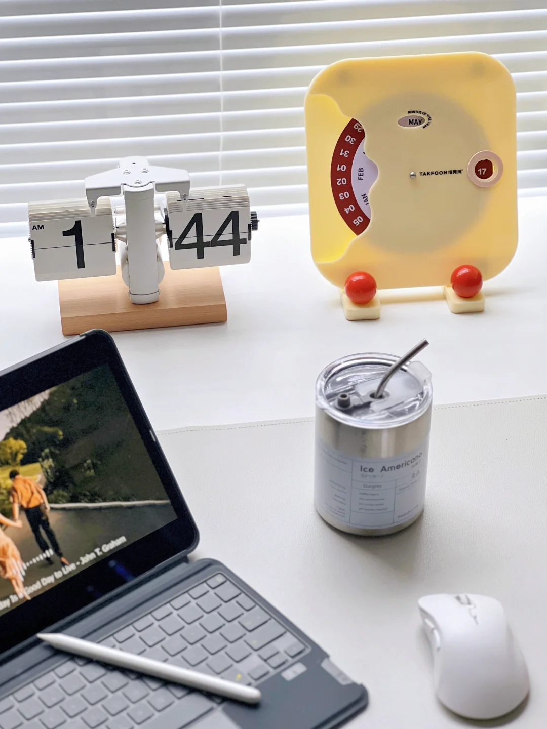 机械电子时钟,造型很ins风有木有?磨砂白搭配木质底座,每一分钟翻页都会滴一声,久违的时钟氛围感(⊙o⊙)哇。