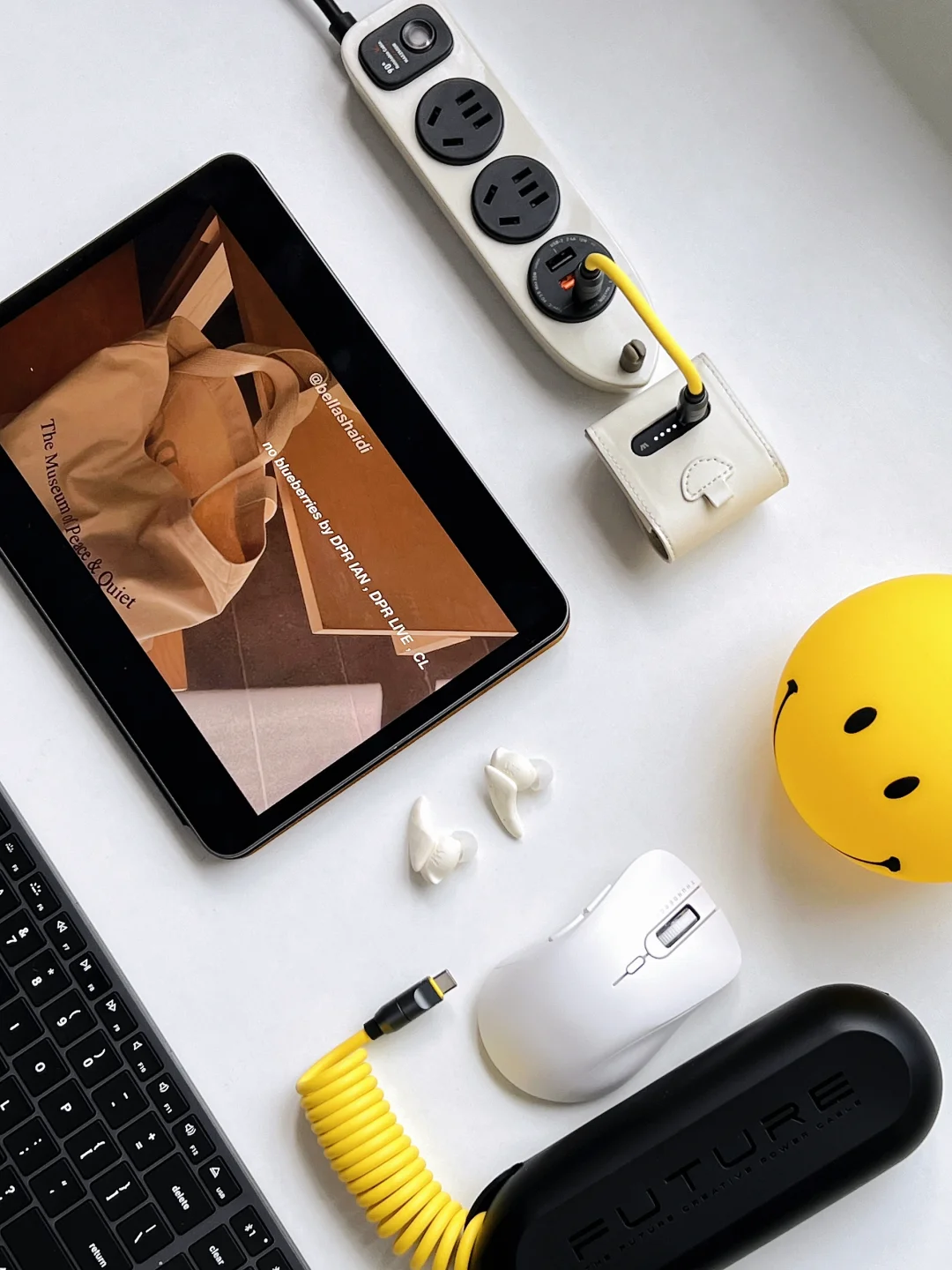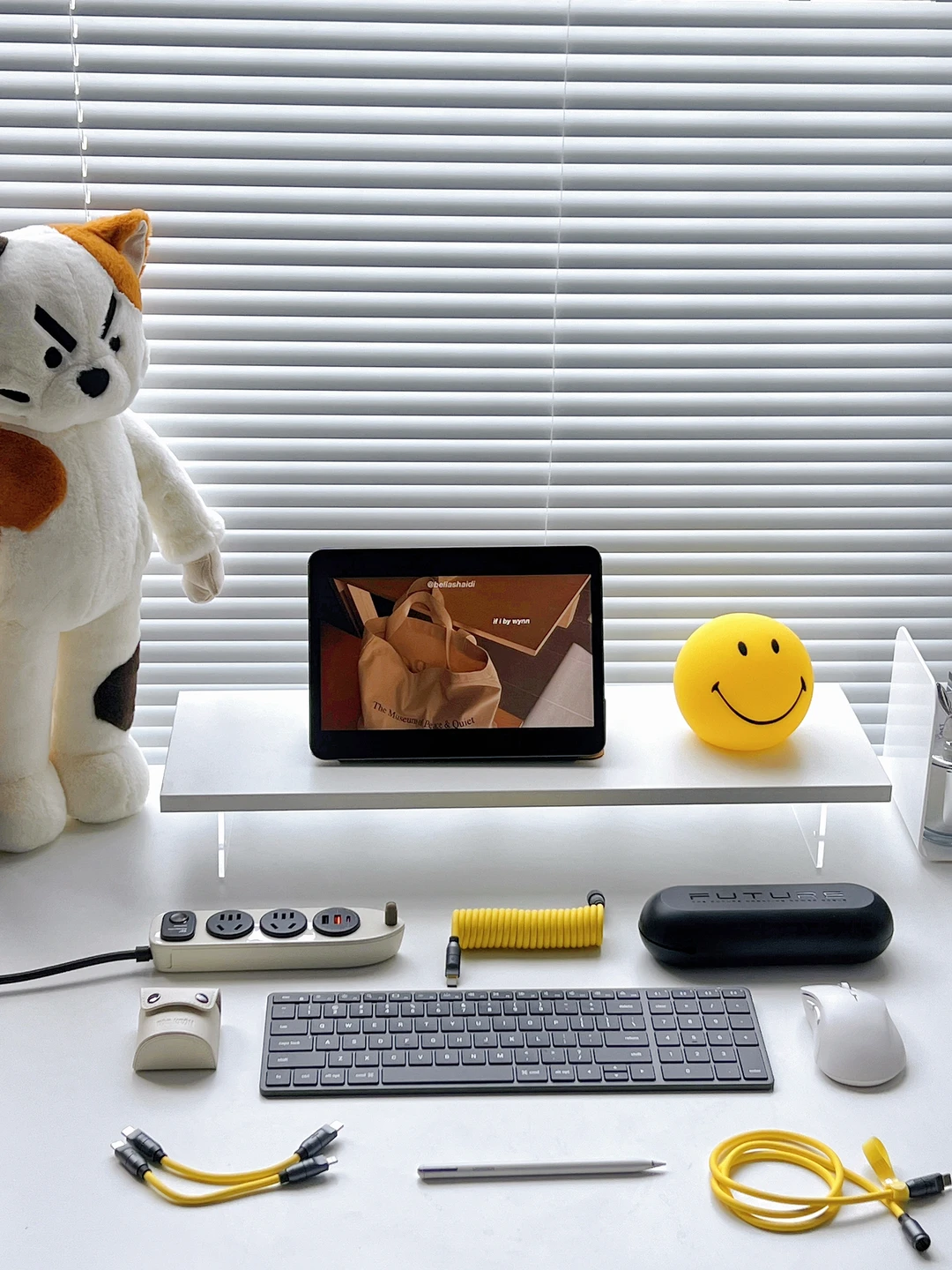 打工人书桌日常分享 书桌桌面主打一个简洁干净 ▪️ipadpro11寸 ▪️小轮船造型排插 ▪️无线键盘 ▪️多功能数据线 ▪️蓝牙耳机 ▪️无线蓝牙鼠标