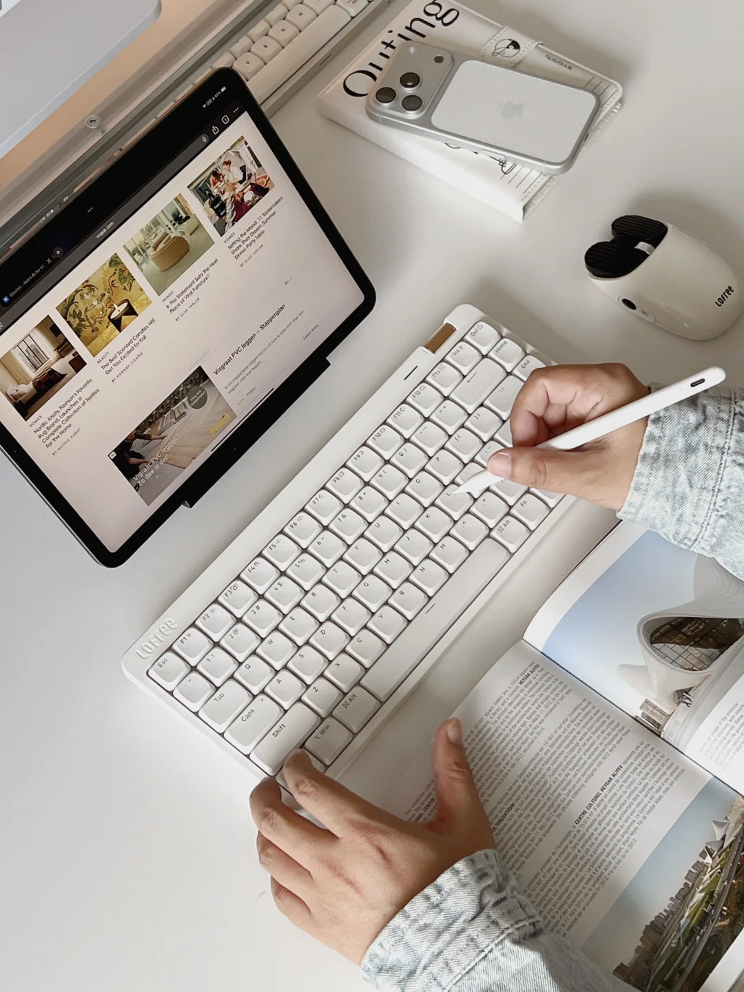 书桌对我来说,不只是工作区域,更像是一个日常陪伴。 最近桌搭又加了个新伙伴,Lofree 小顺青春版 。很酷的一点是,它能同时连我的 MacBookPro 和 iPadPro,切换自如,工作的时候效率提升不少。写东西、回信息、看资料来回切,完全不乱。 外观上是我喜欢的极简风,84配列,没有多余设计,干干净净。矮轴键程轻轻敲就能触发,手感轻盈,声音清脆,这种“安静陪伴”的氛围感,正好和我的桌搭理念契合✌️。 桌搭对我来说是一种治愈:干净、顺眼、好用。效率和美学其实可以兼得。