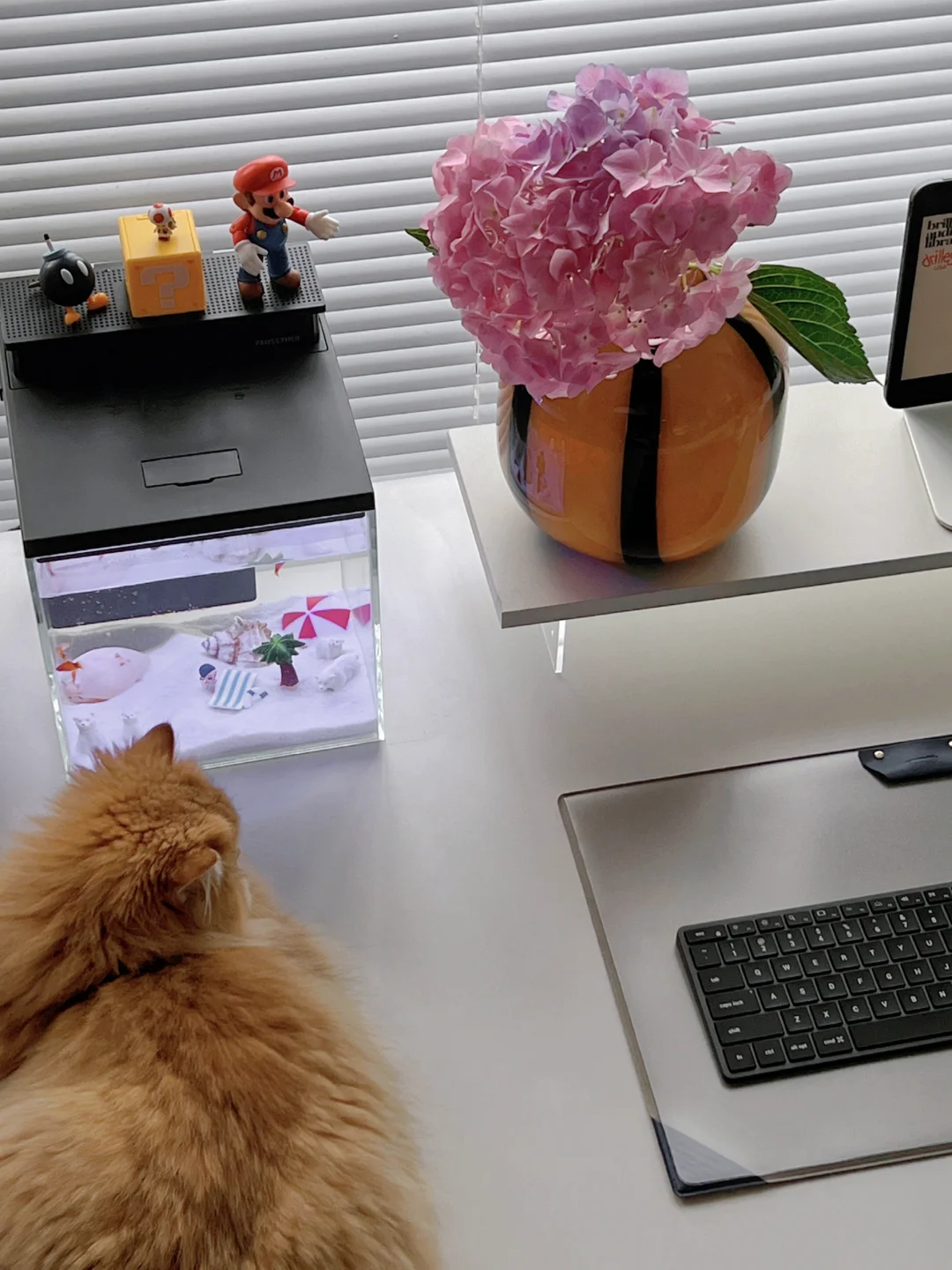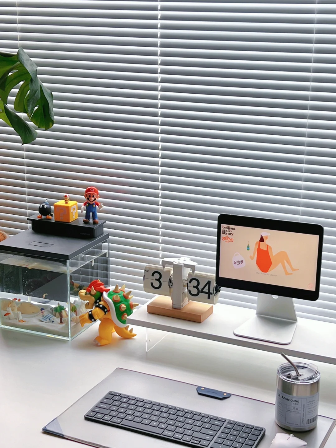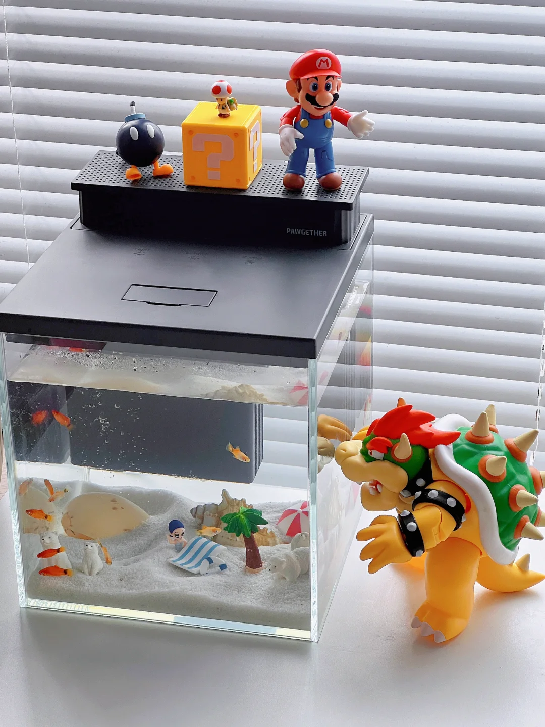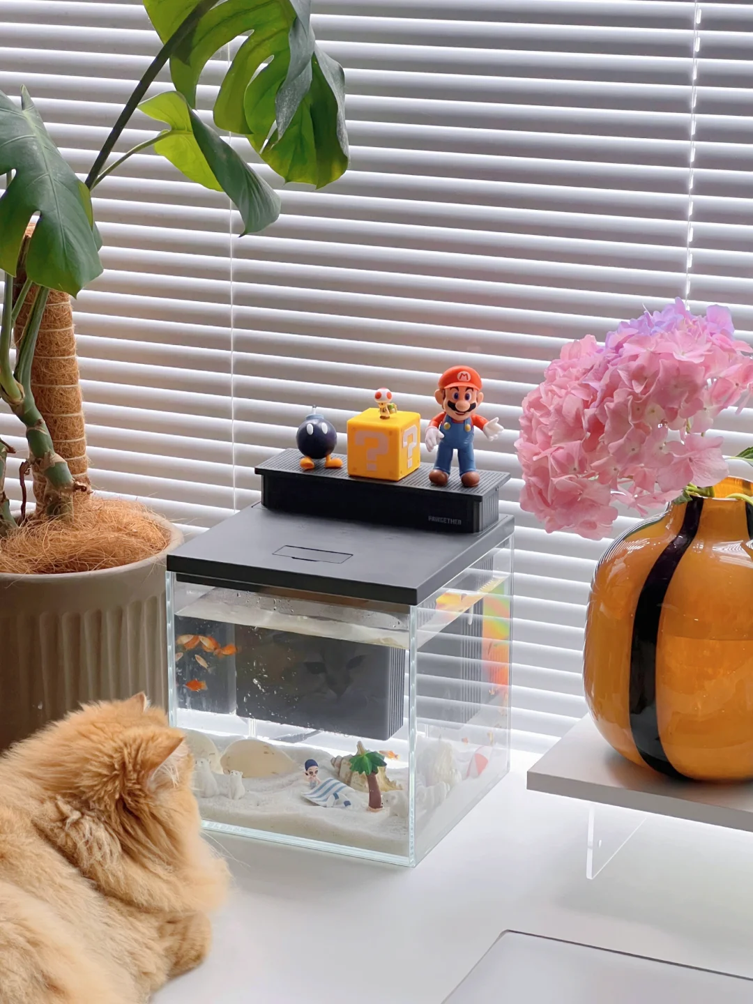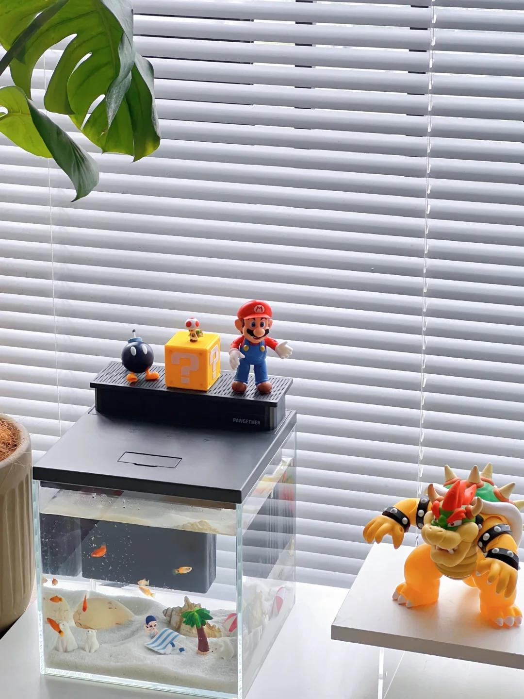 🥳🥳上周看完《超级马力欧兄弟大电影》,回来立刻心血把鱼缸搬到书桌,让马里奥守护这个桌面小鱼缸。