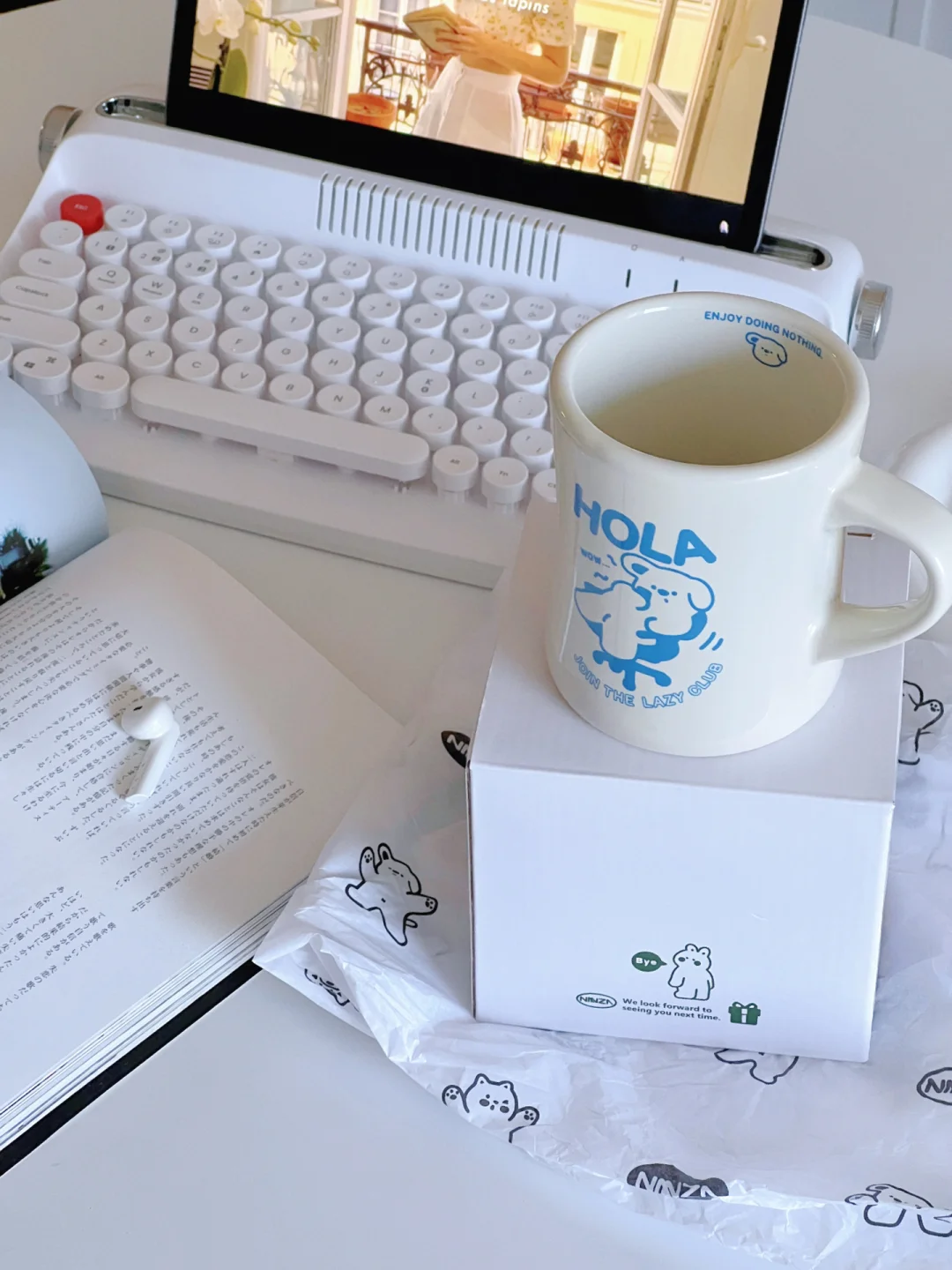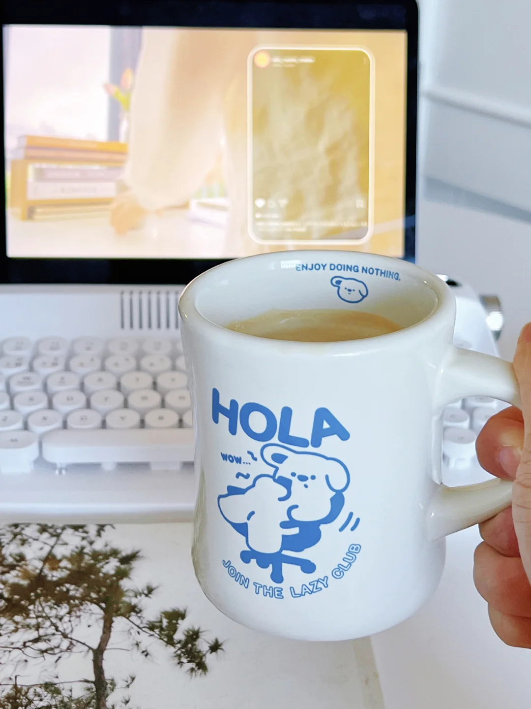 HOLA!周末快乐 好天气的Saturday. 喝着咖啡☕ 看着剧. 这个胖嘟嘟的ins风陶瓷水杯很可爱 蓝色带来好心情。