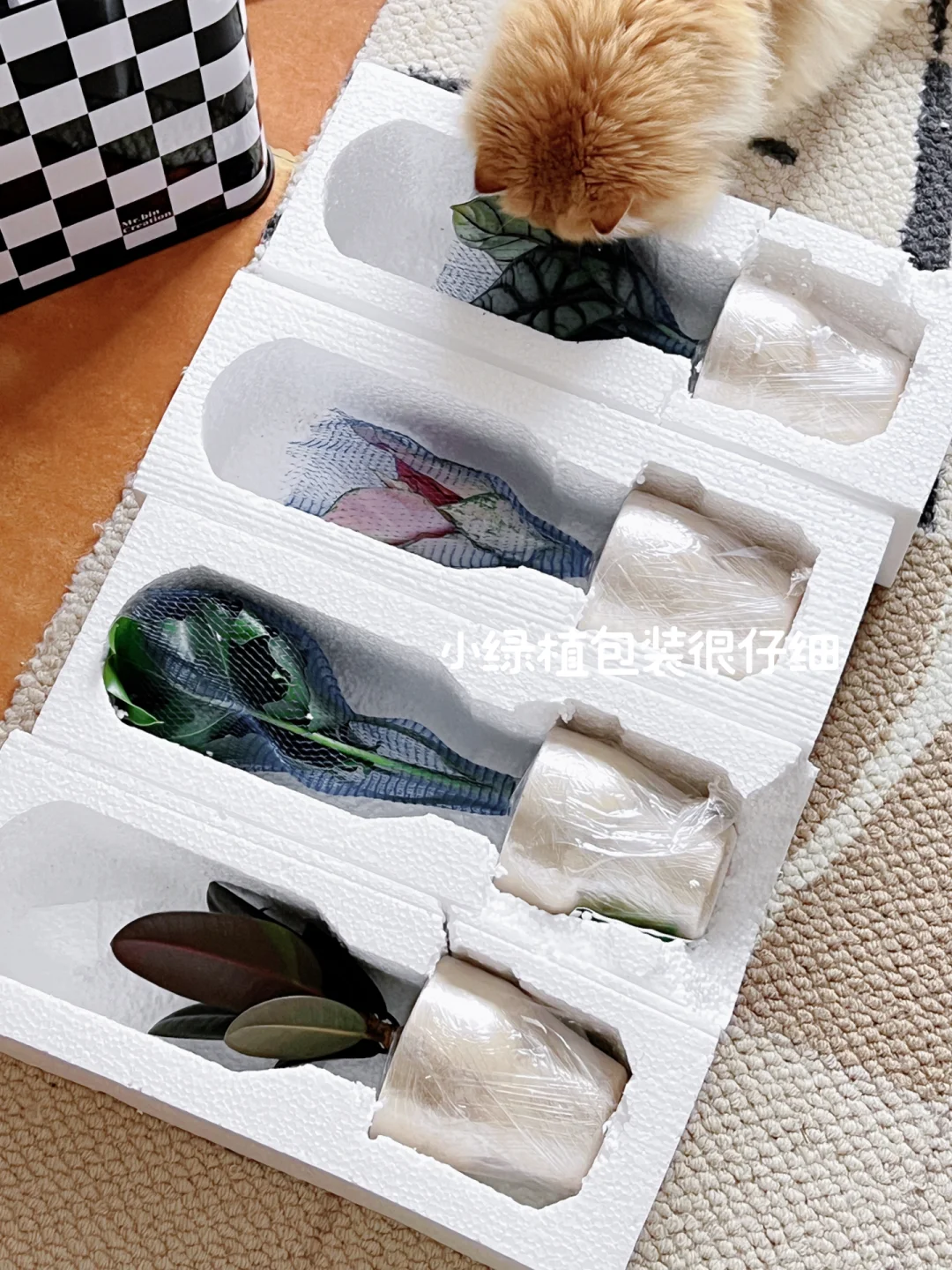 新入的四盆小可爱们,“白犀牛”、“吉利红”、“橡皮树”、“小天使”。之前大型植物都是去当地花卉市场买,又费事又费力。如今小绿植网购就方便太多,
