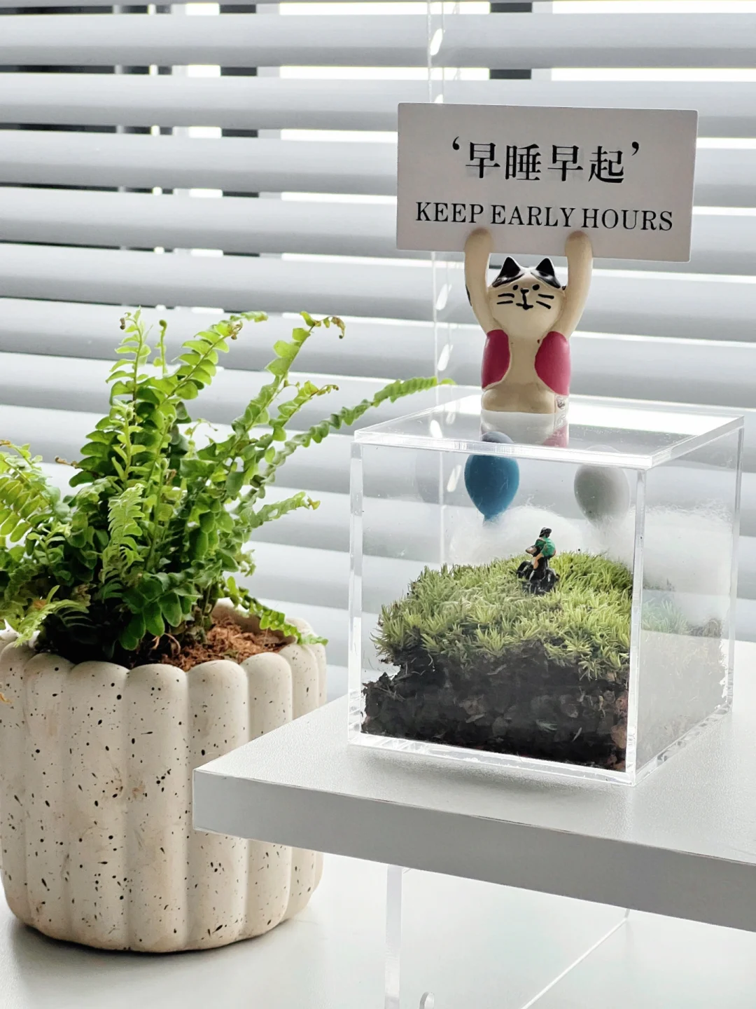 今天的书桌充满了元气! 把小绿植盆栽们都摆上了书桌 手工做了个苔藓微景观 喷了水后,充满了生机勃勃,心情也愉悦啦! 周末快乐呀!