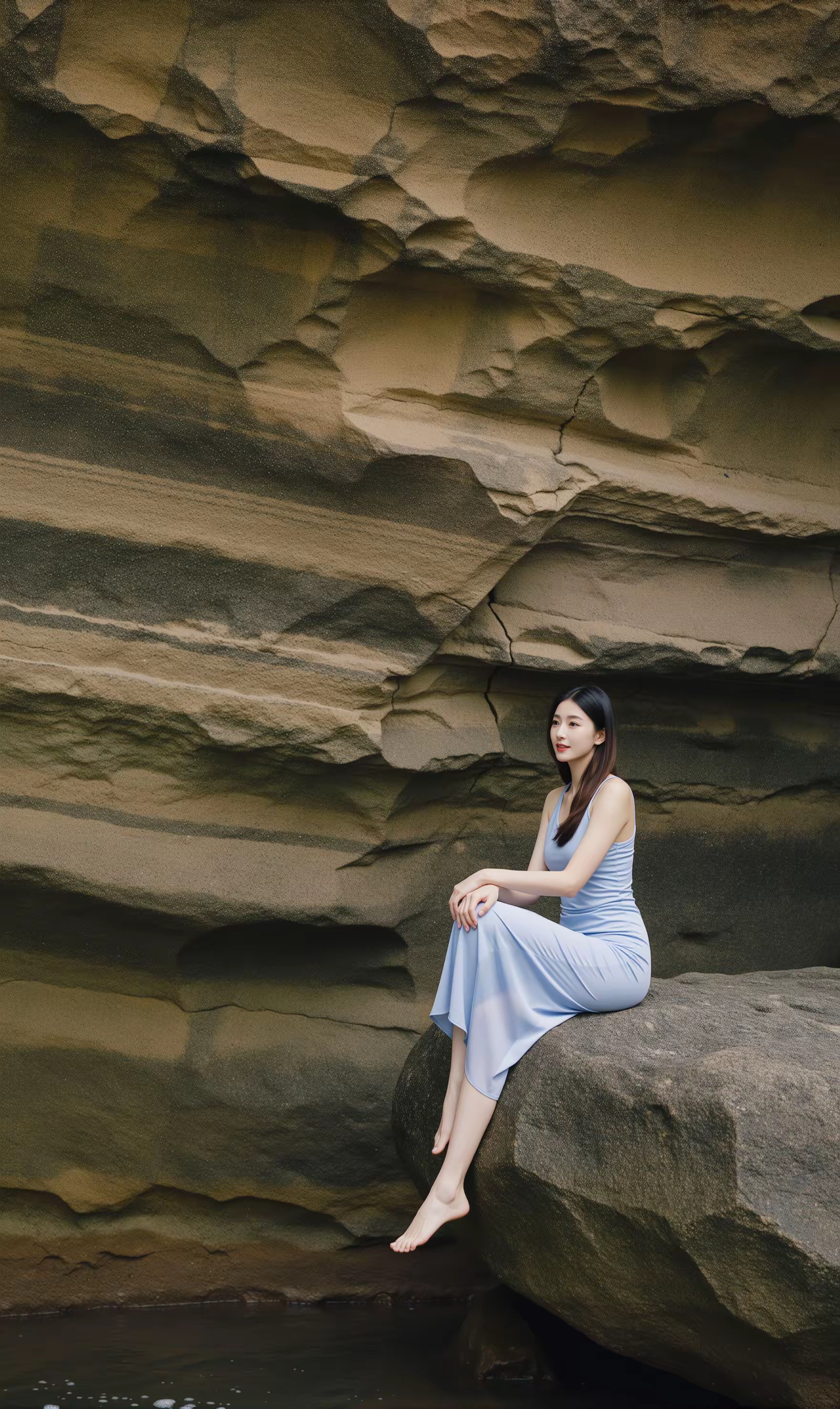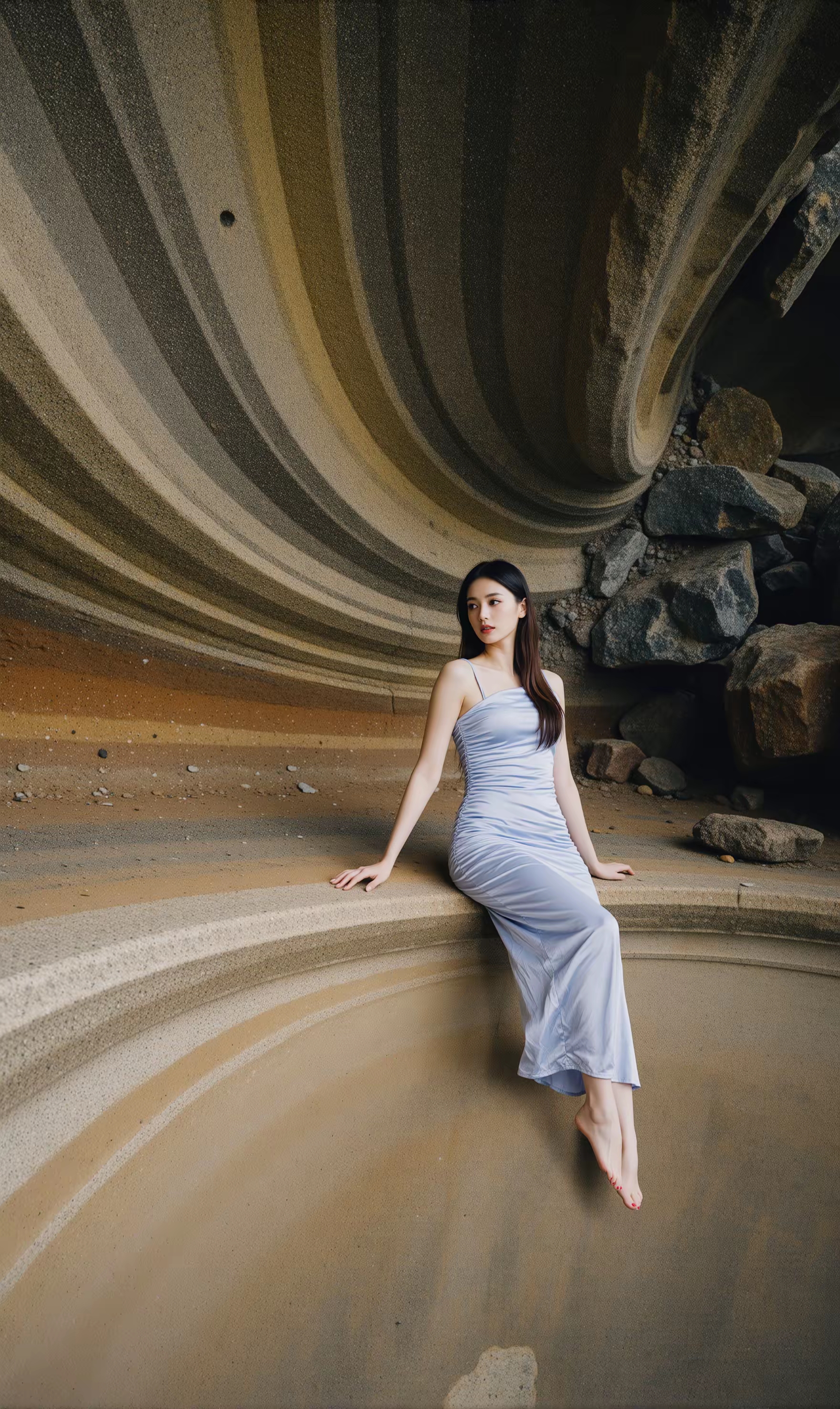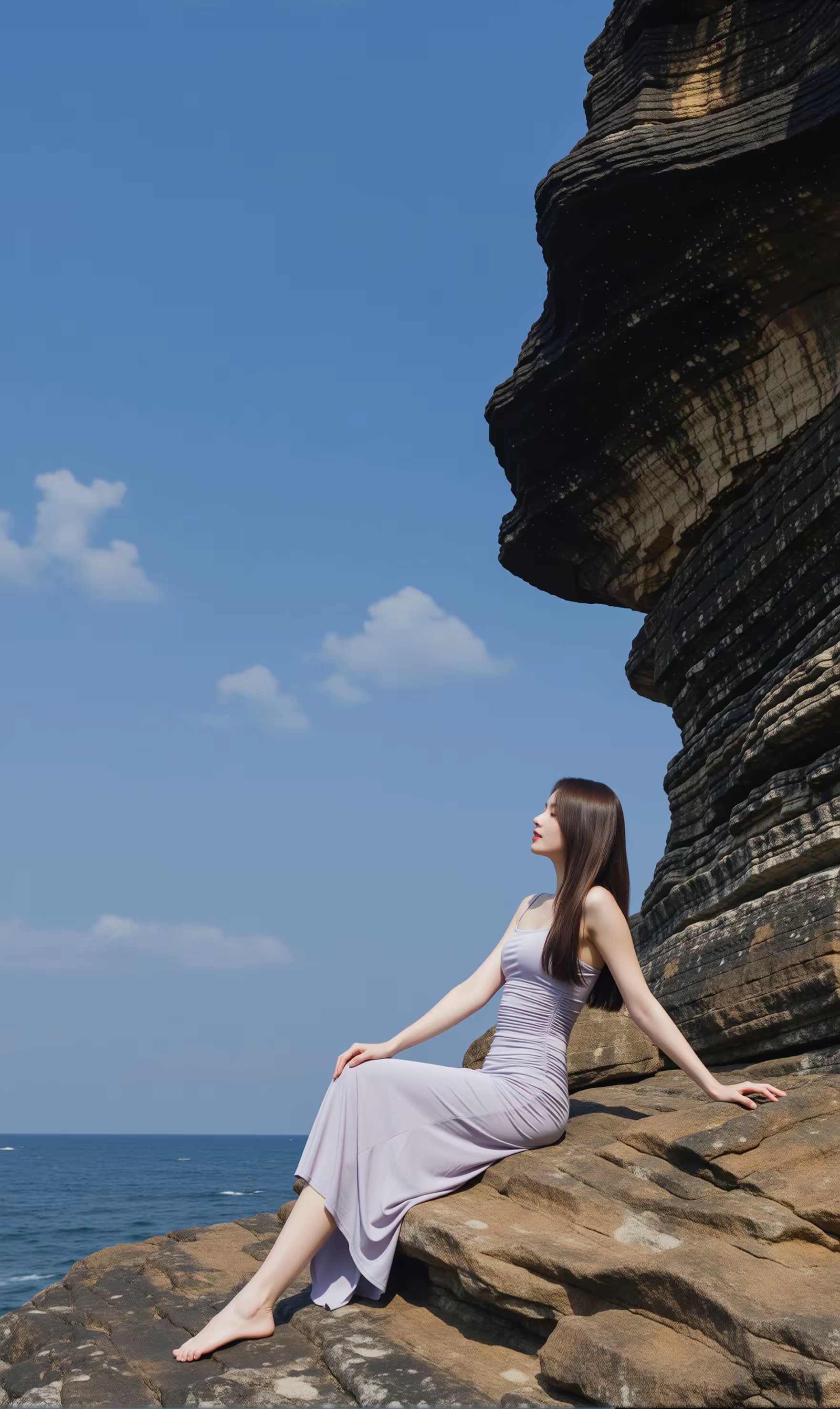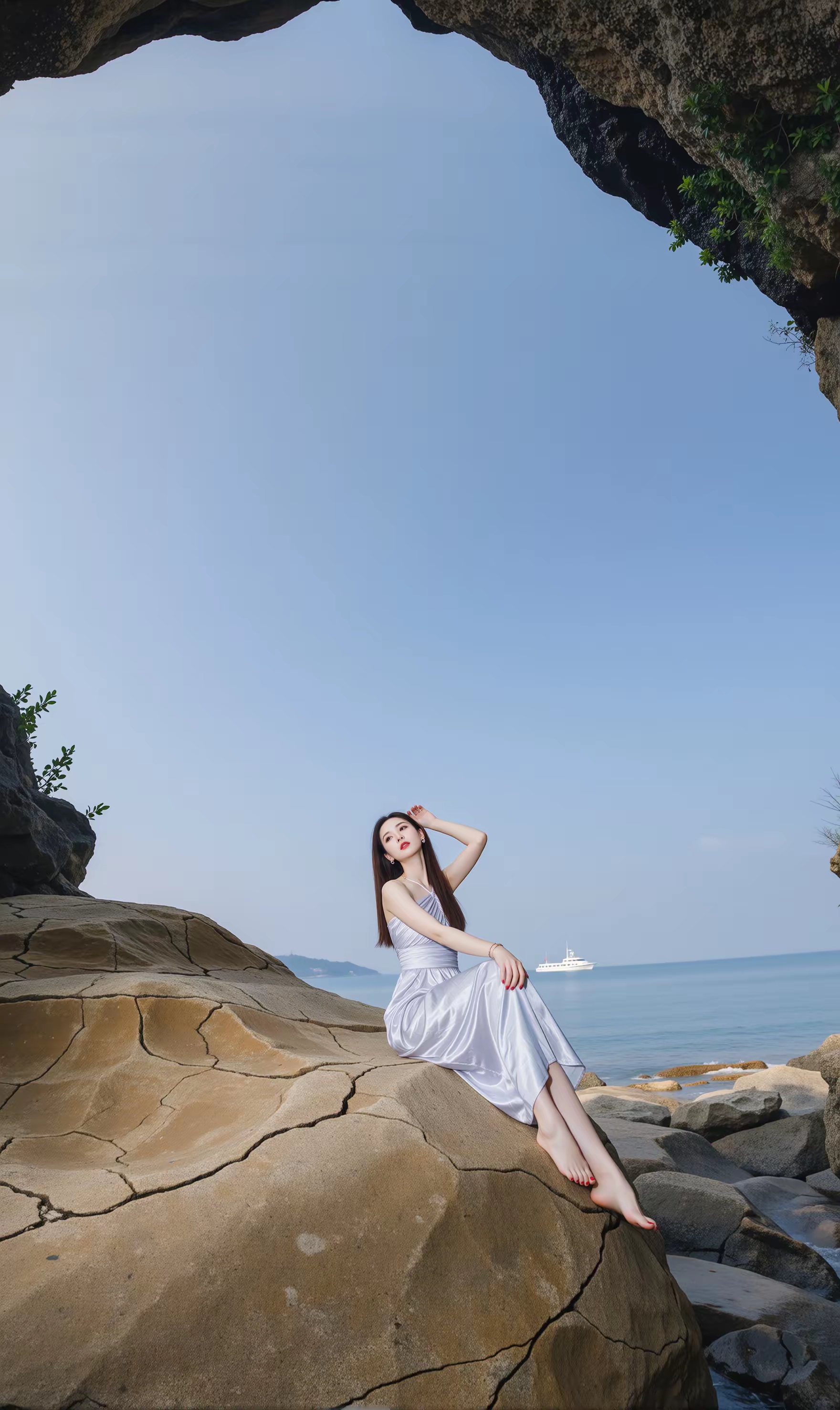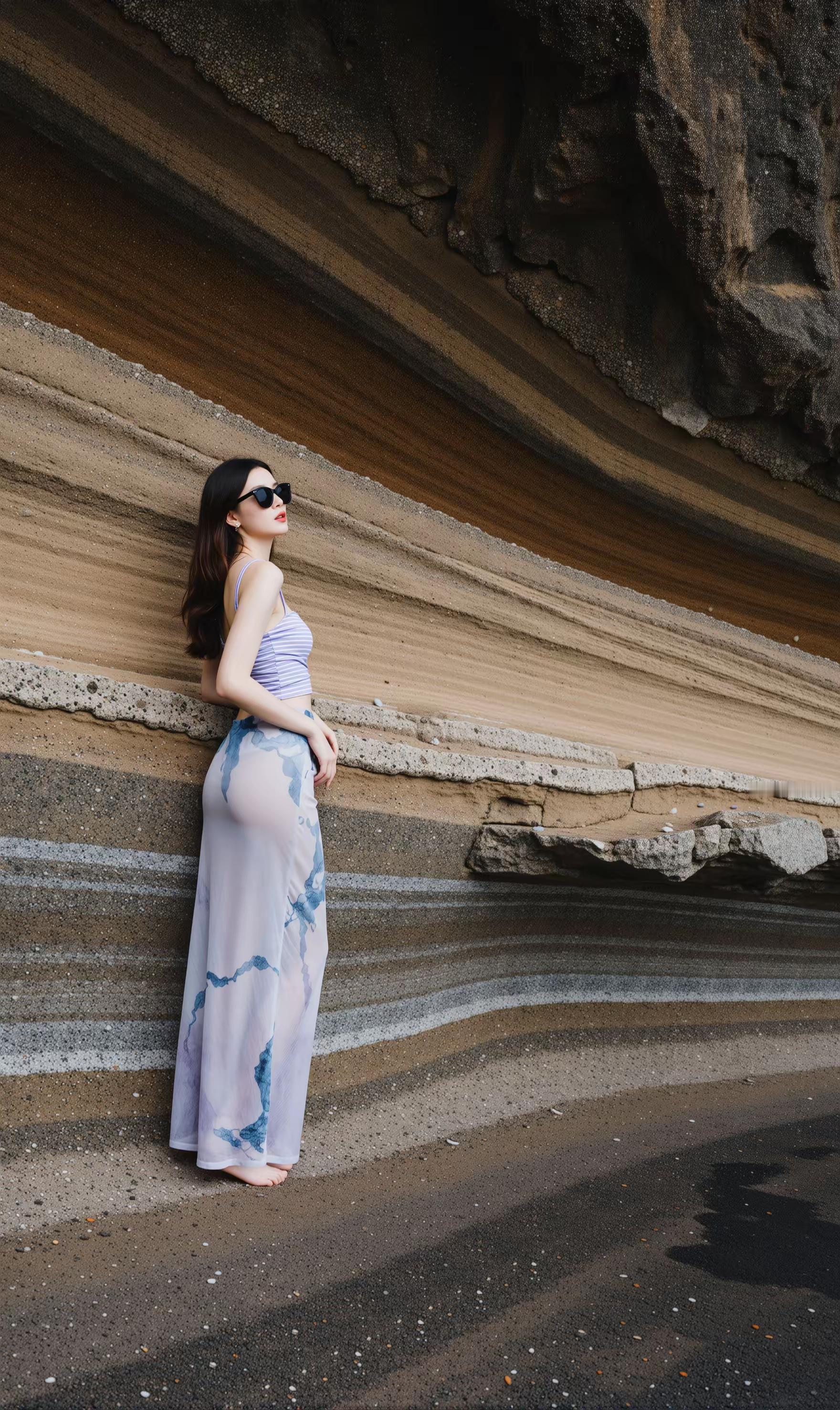 优雅女神—海边漫步,轻纱飘逸,墨镜遮面,尽显时尚风采!