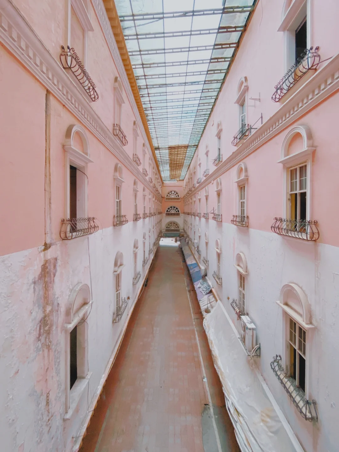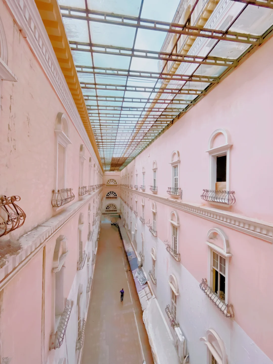 逛完老仓山,趁太阳☀落山之际,打卡了类似电影《布达佩斯大饭店》配色的粉色建筑。 . 🕍名字:中洲岛 🚕地址:福州台江区中洲岛(旧解放大桥) 💰价格:0元 📸拍照:iphone11pro 其实建筑的外观很气派又独具特色,处于江心位置,视野是无敌。可惜因为各种原因,寂寥落败。 夕阳下的粉色,久违的美。 . 内部与外围都可随意走动,天台上不去了。 窗口拍出去加个滤镜就是instagram风。