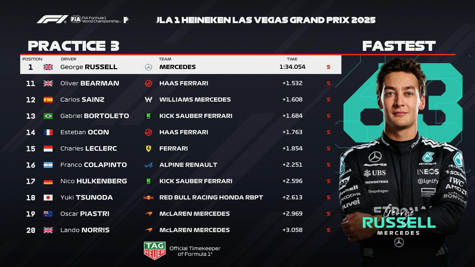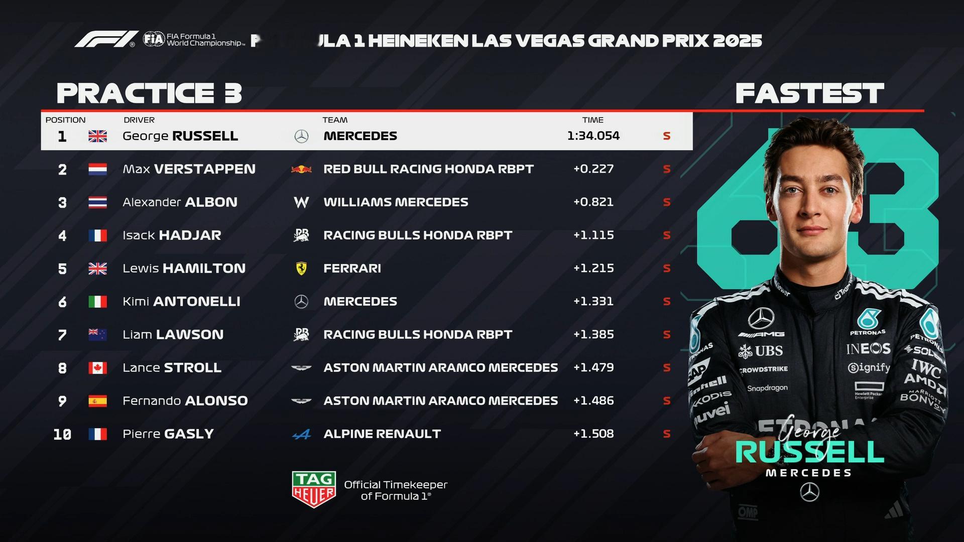 拉斯维加斯大奖赛三练成绩表如图,北京时间12点排位赛!
