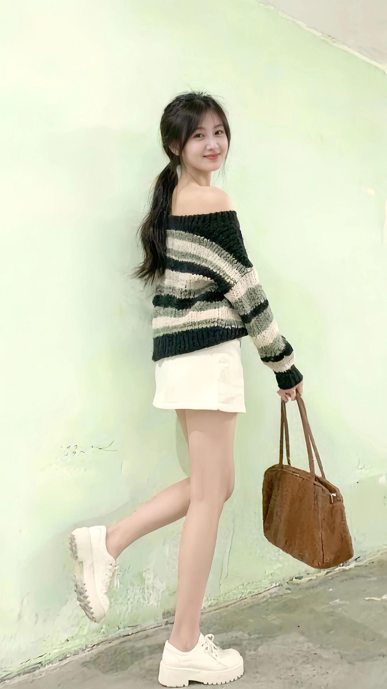 秋冬必备条纹毛衣,搭配白色短裙和小白鞋,简约又时尚!