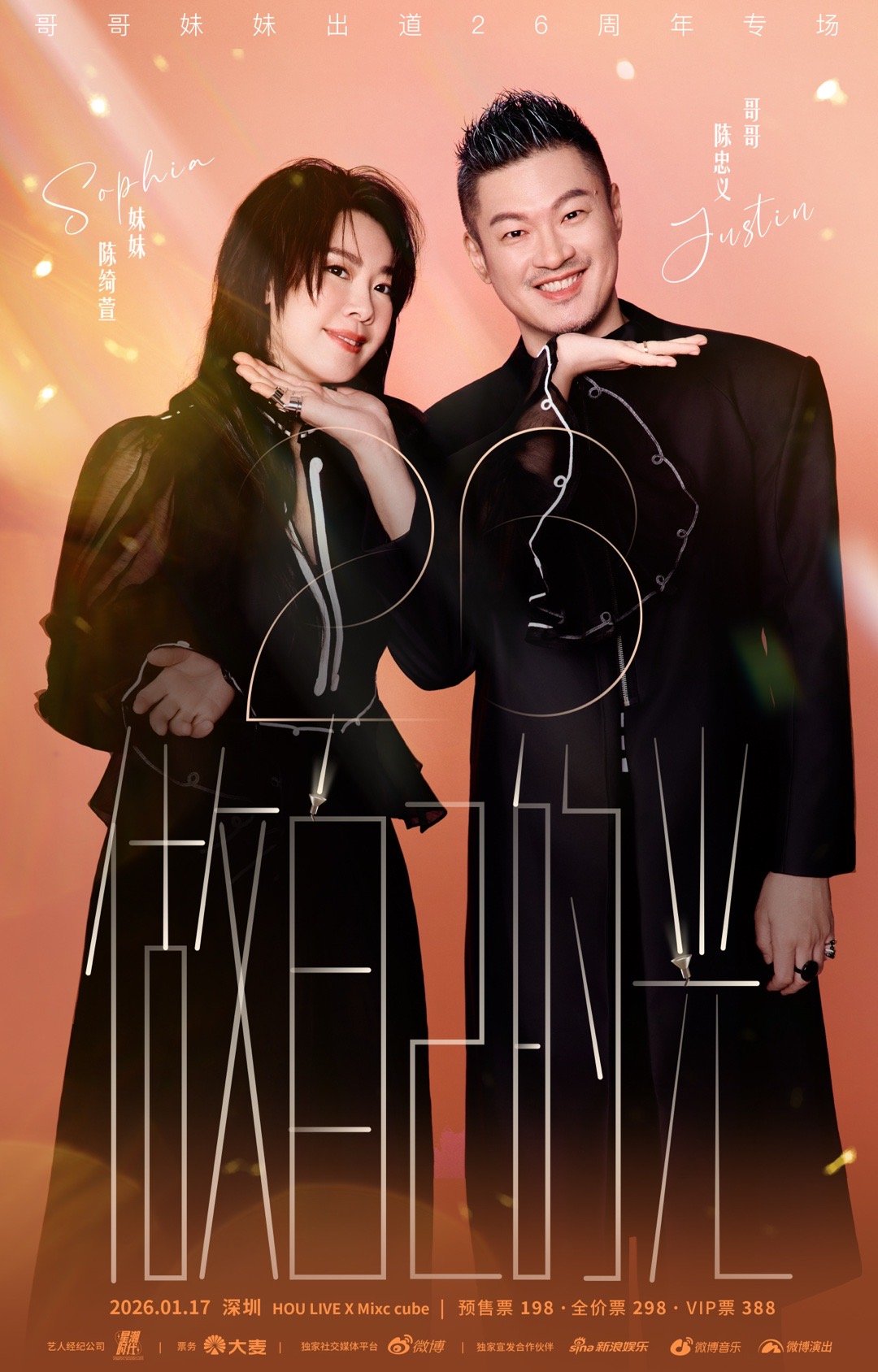 〈杀破狼〉〈我比想象中爱你〉等经典歌曲的创作和演唱者哥哥妹妹(JS组合)将于1月17日在深圳举行出道26周年专场演出「做自己的光」