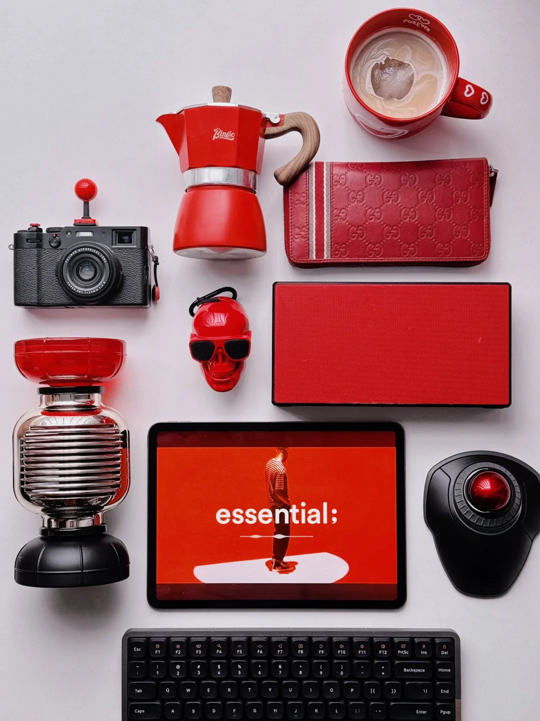 今日份书桌日常 关键字“红”🔴🔴🔴 都是日常会用的数码好物分享 . 🖥️ ipadpro | 11寸 ⌨️ 机械键盘 | Lofree 🔴 无火香薰|厢XIANG 🖱️ 蓝牙鼠标 | Kensington 💀 骷髅音箱|AeroSkull Nano 📷 富士FujiX100v | 黑色 📻 蓝牙音箱 | SONY X5 ✏️ Apple Pencil ☕️ 马克杯| NANZA 💼 钱包|GUCCI