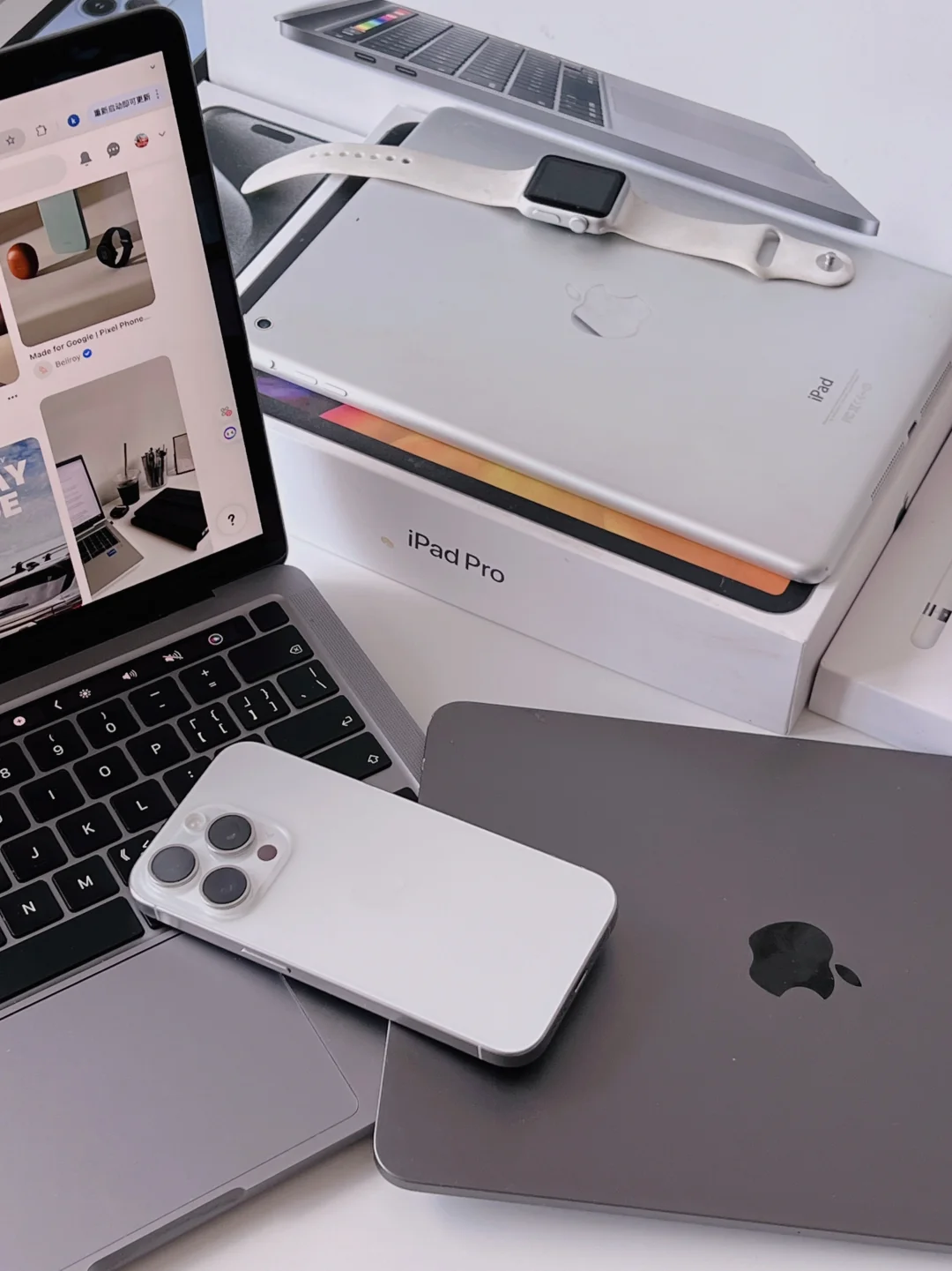 手机是从iphone6开始入门 一代产品也很多~从ipad、ipadmini、ipadair、ipadpro、applewatch、pencil都入过一代 现在主力是ipadpro11寸 Macbookpro已经用的少了 手机iphone15pro主力机 iphone13pro备用机 应该不打算升级iphone16