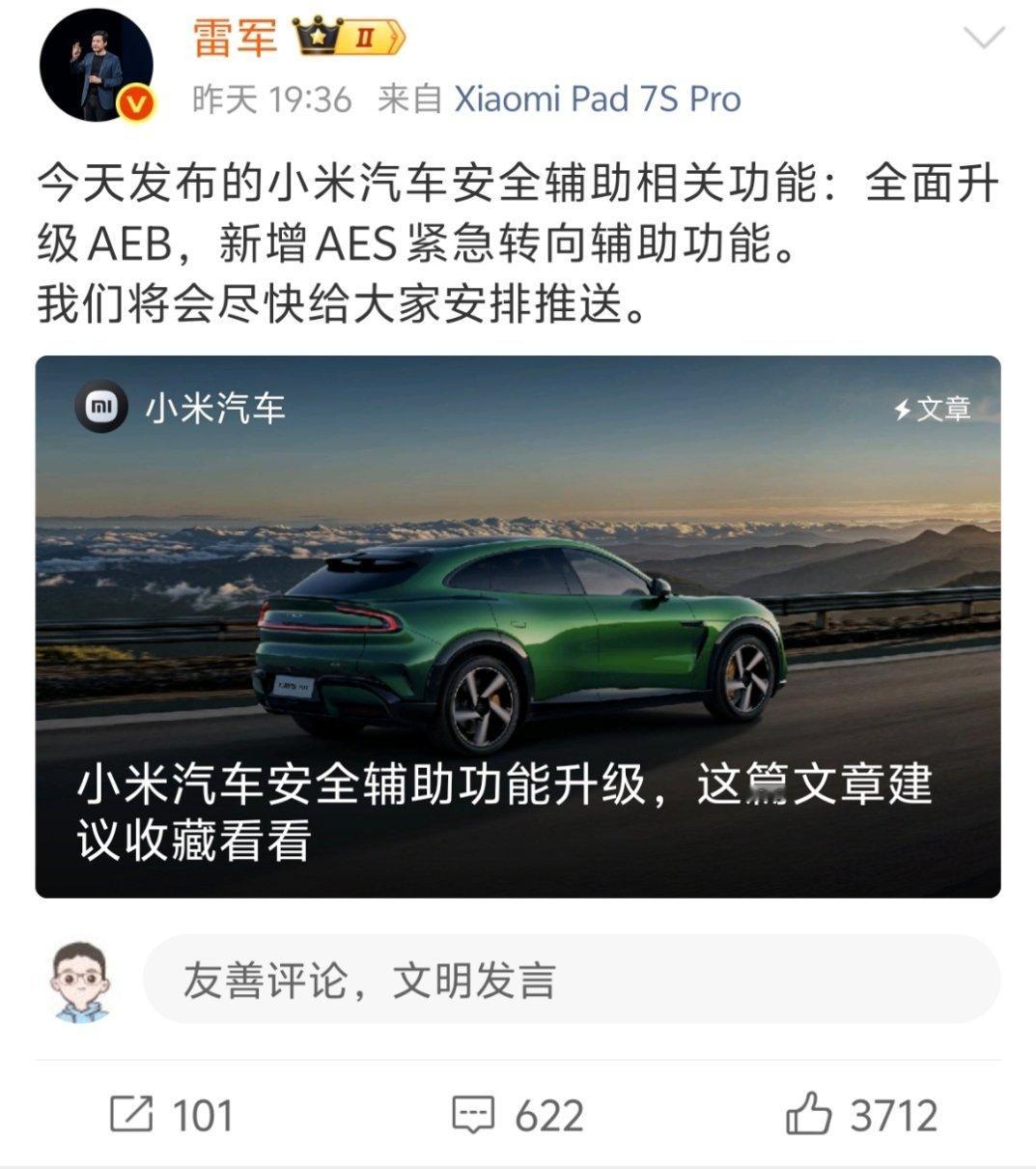 小米汽车安全辅助相关功能又有升级,但这个开头有点绷不住了,从文字中就能读出紧张。