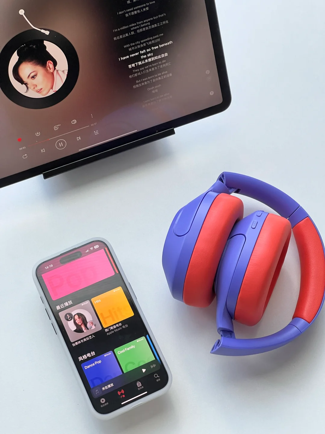 作为一名重度音乐🎵爱好者,在书桌工作时也离不开耳机🎧。紫+红配色很潮🤩,自带深度降噪,可同时蓝牙连接两台设备,方便我在ipadpro和iphone上自由切换。