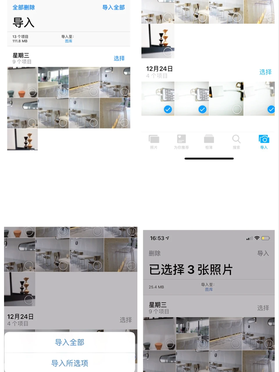 3.选择你需要导入手机📱的照片(也可以一键全部导入)