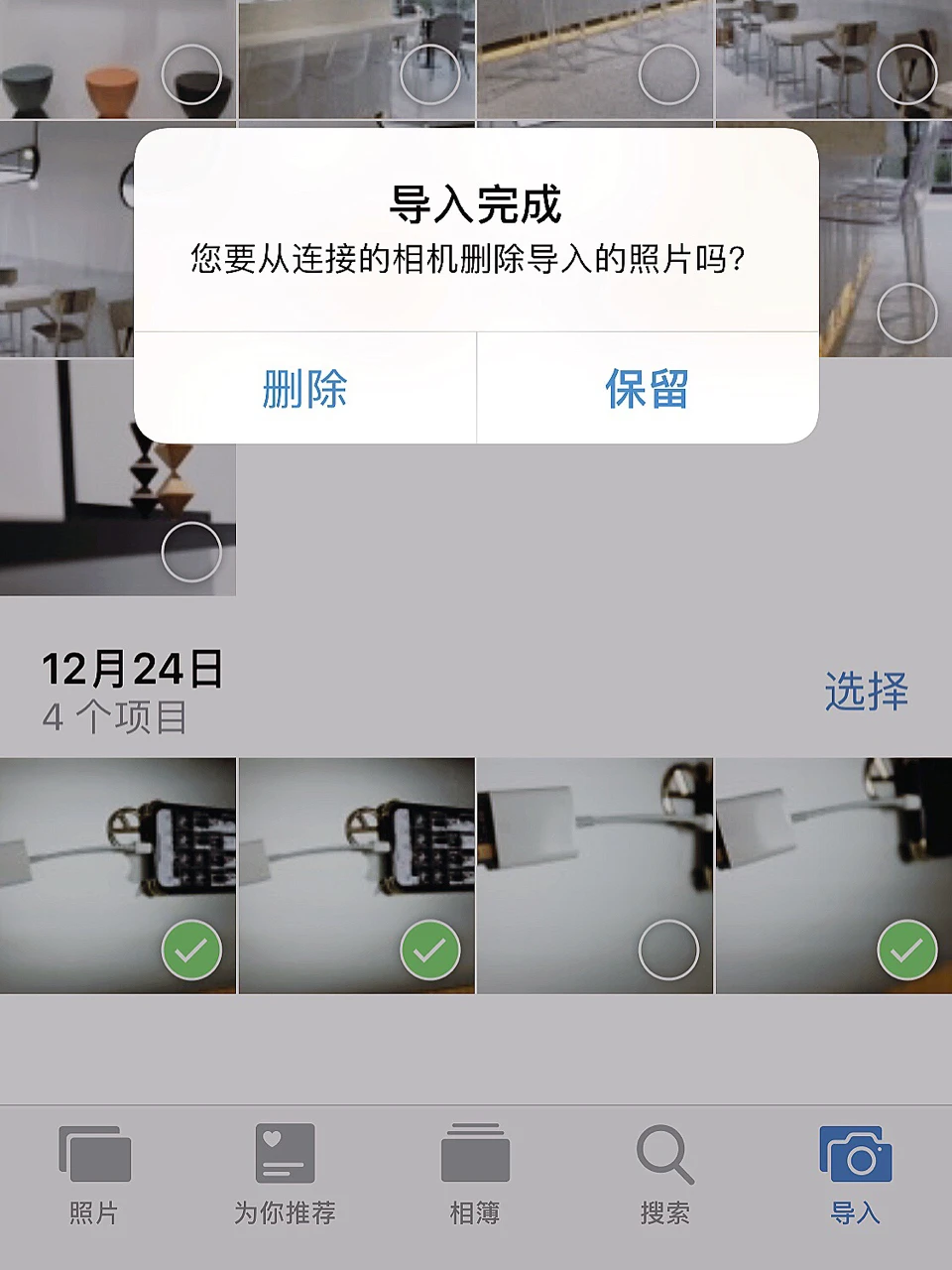 4.确定后,系统会自动导入。最后会提示是否要删除已导入的照片。